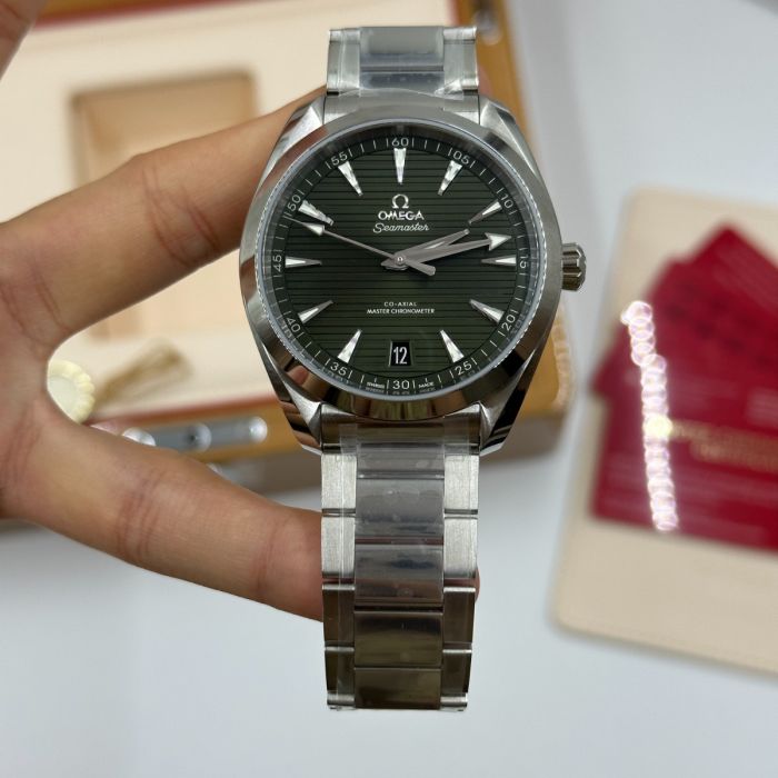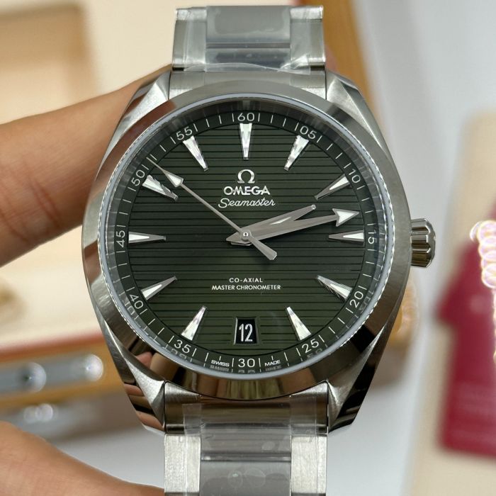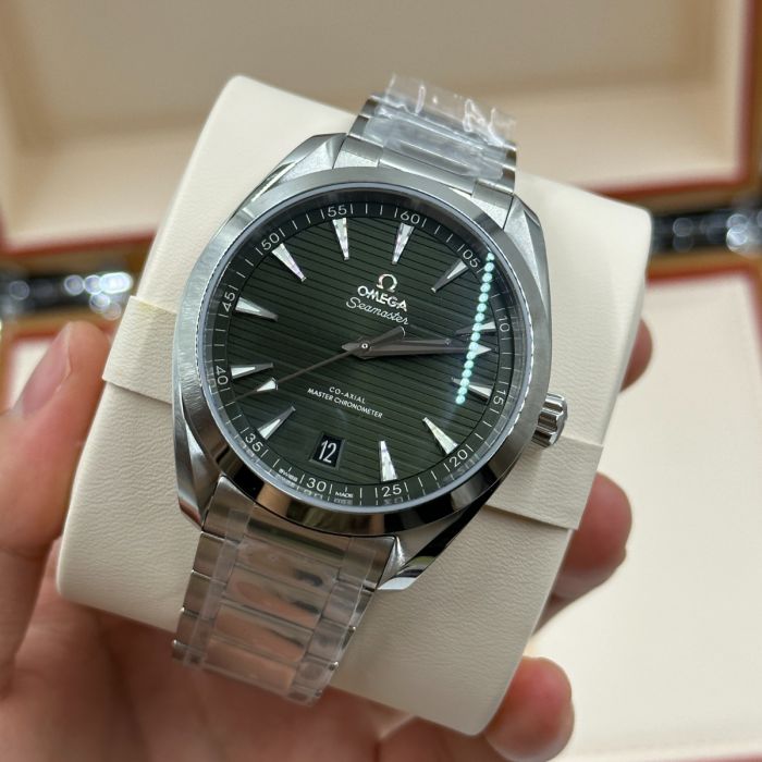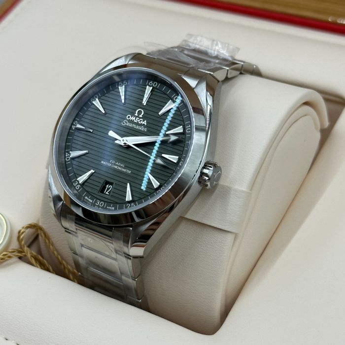 Unworn Omega Seamaster AQUA TERRA 150M CO‑AXIAL MASTER CHRONOMETER 220.10.41.21.10.001. 41 mm, Green dial, Steel case, Steel bezel, 8900 calibre, Self Winding Movement, 60 Hours power reserve, Steel bracelet with Butterfly clasp. Water resistant to 150 m.
