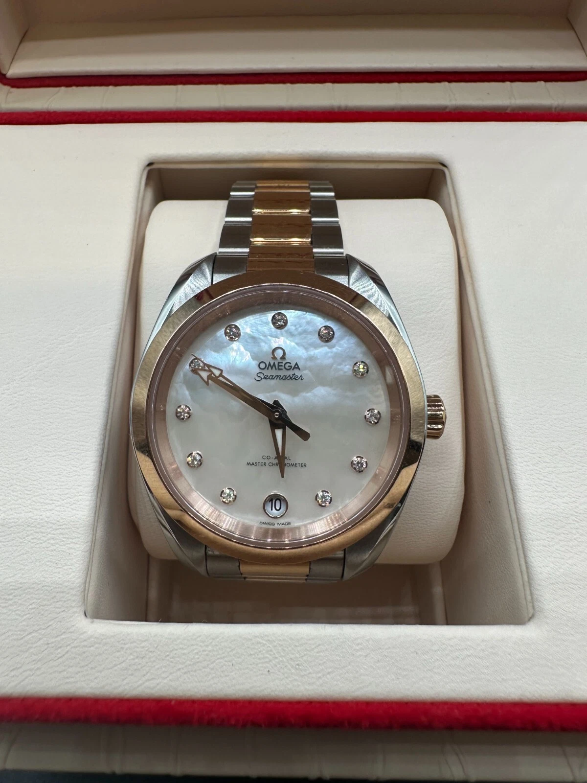 Omega Seamaster Aqua Terra 150M 34mm White Dial with Diamonds Stainless Steel and Sedna™ 18k Rose Gold Bracelet 220.20.34.20.55.001