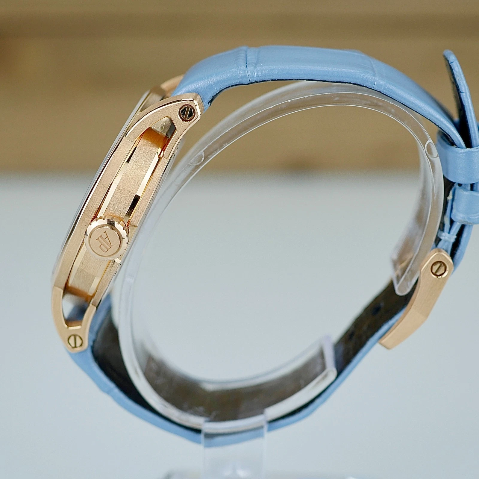 | Case Details | 18-carat pink gold case set with brilliant-cut diamonds, double glareproofed sapphire crystal and caseback. |