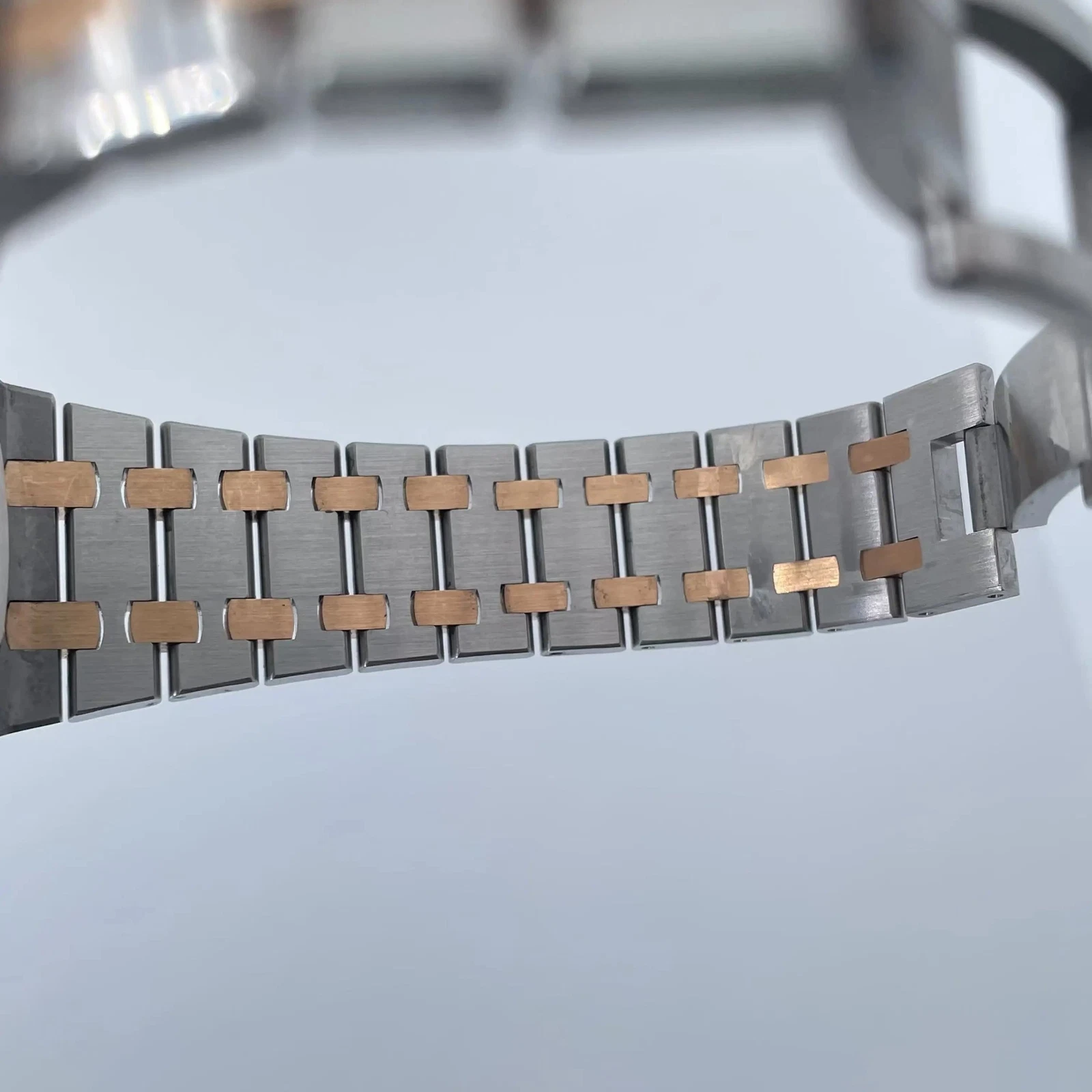 | Case | Stainless steel case, glareproofed sapphire crystal and caseback, 18-carat pink gold bezel, screw-locked crown and links, water-resistant to 50 m. |