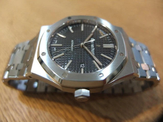 Dial Black dial with “Grande Tapisserie” pattern, rose gold applied hour-markers and Royal Oak hands with luminescent coating