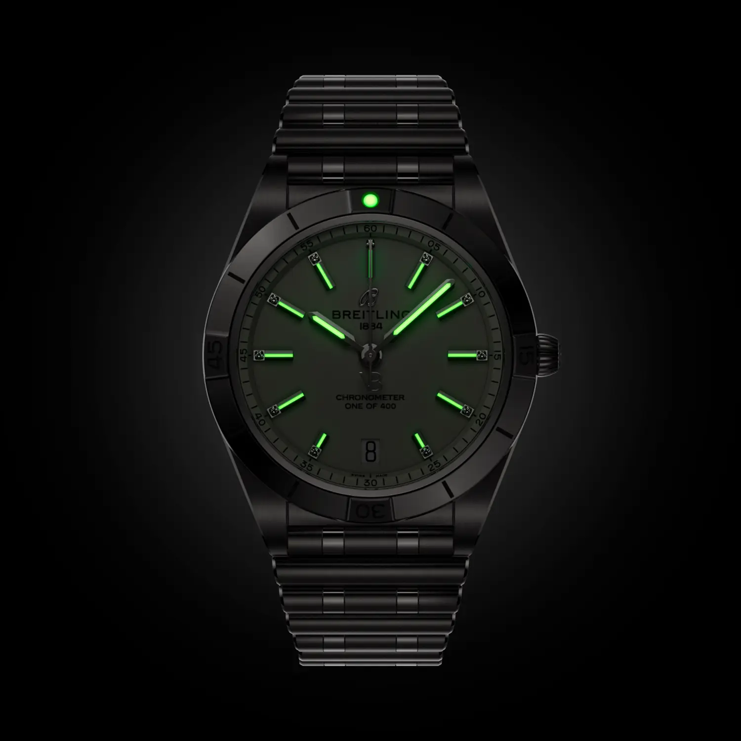 Secured with the iconic Chronomat rouleaux bracelet, this luxurious timepiece offers water resistance up to 10 bar (100 metres) and a 42-hour power reserve.