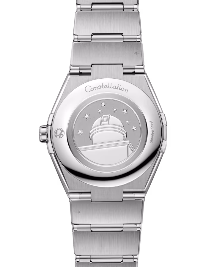 Calibre OMEGA 4564: Quartz precision movement with rhodium‑plated finish. End of battery life indicator.