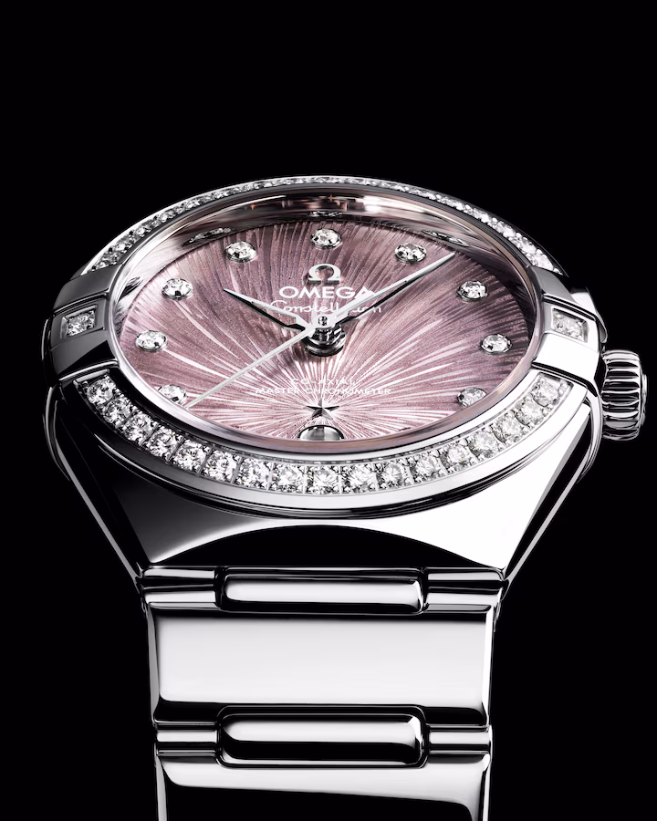 Omega Constellation - 29mm Steel Case - Diamond Bezel - PVD Lilac Dial - Signature Mono-Rang Bracelet 131.15.29.20.60.001
