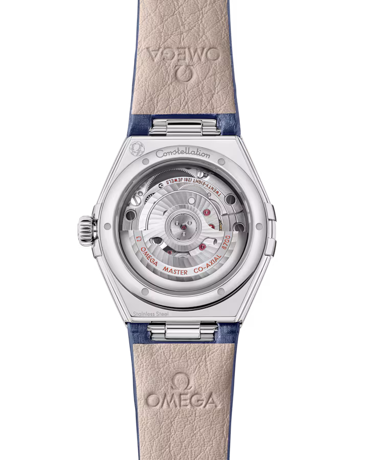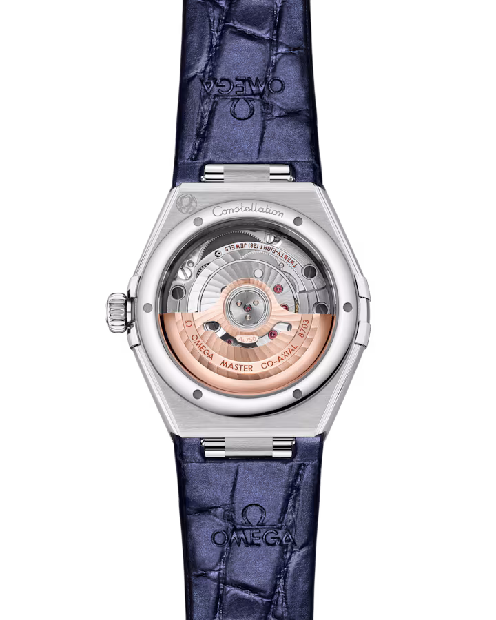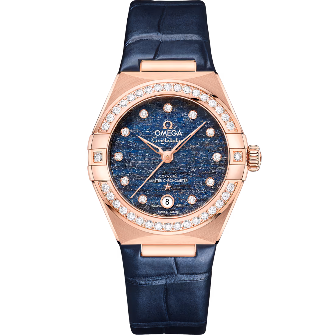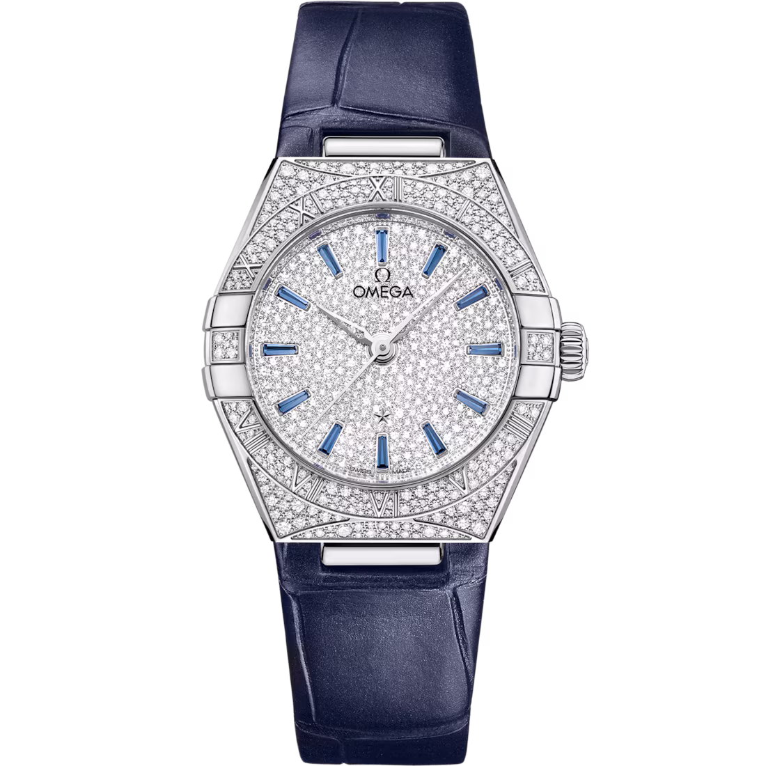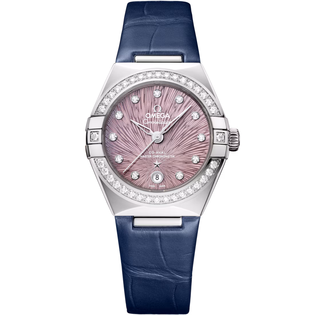 Omega Constellation - 29mm Steel Case - Diamond Bezel - PVD Lilac Dial - Blue Leather Strap 131.18.29.20.60.001