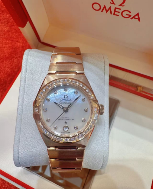 Omega Constellation 34mm Red Dial with Diamonds Sedna™ 18k Rose Gold Bracelet 131.55.34.20.61.001