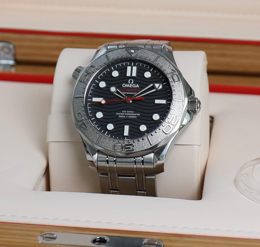 Unworn Omega Seamaster DIVER 300M CO‑AXIAL MASTER CHRONOMETER 210.30.42.20.01.002. 42 mm, Black dial, Steel case, Ceramic bezel, 8806 calibre, Self Winding Movement, 55 hours power reserve, Steel bracelet with Foldover clasp. Water resistant to 300 m.