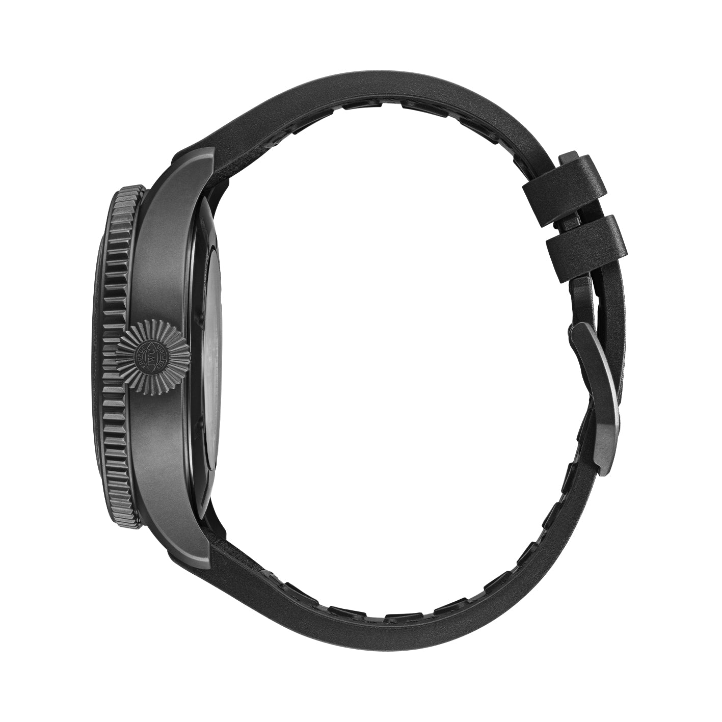 Highlights: The Pilot’s Watch Timezoner TOP GUN Ceratanium (IW395505) is the first TOP GUN model with a timezoner function. Simply by pressing down and rotating the bezel, a different time zone can be set. The hour hand, the integrated 24-hour display and the date will move forwards or backwards in one-hour steps. This also works across the dateline and without losing a single second in the process. The case of this all-black pilot’s watch is manufactured from Ceratanium. Developed by IWC over five years, this performance material combines the unique strengths of titanium and ceramic: It’s light and robust like titanium and, at the same time, similarly hard and scratch-resistant like ceramic.