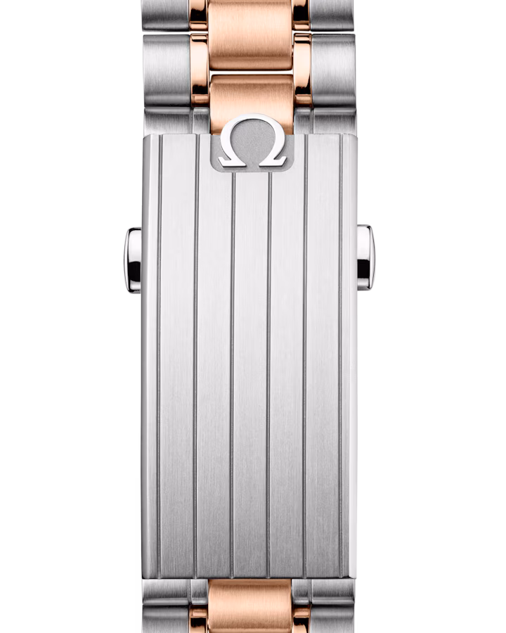 A sapphire crystal protects the front and back side of the watch. Stainless steel & 18K Sedna™ Gold bracelet with folding clasp. While the watch’s water-resistance up to 50 m ensures durability.