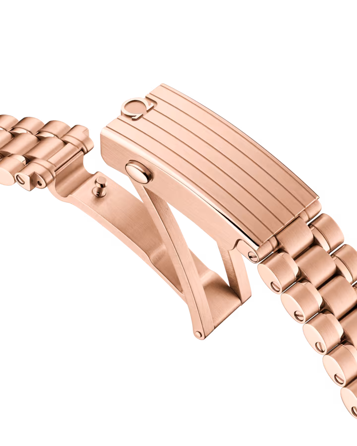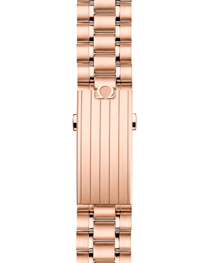 A sapphire crystal protects the front and back side of the watch. 18K Sedna™ Gold bracelet with folding clasp. While the watch’s water-resistance up to 50 m ensures durability.