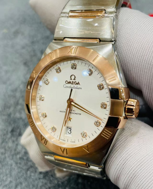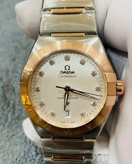 Omega Constellation 39mm Silver Dial with Diamonds Stainless Steel and Sedna™ 18k Yellow Gold Bracelet 131.20.39.20.52.002