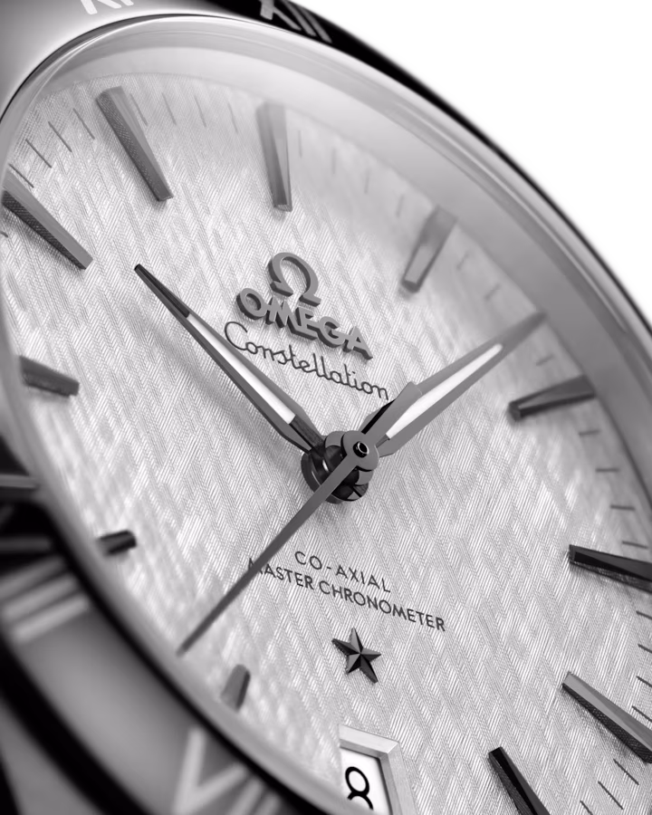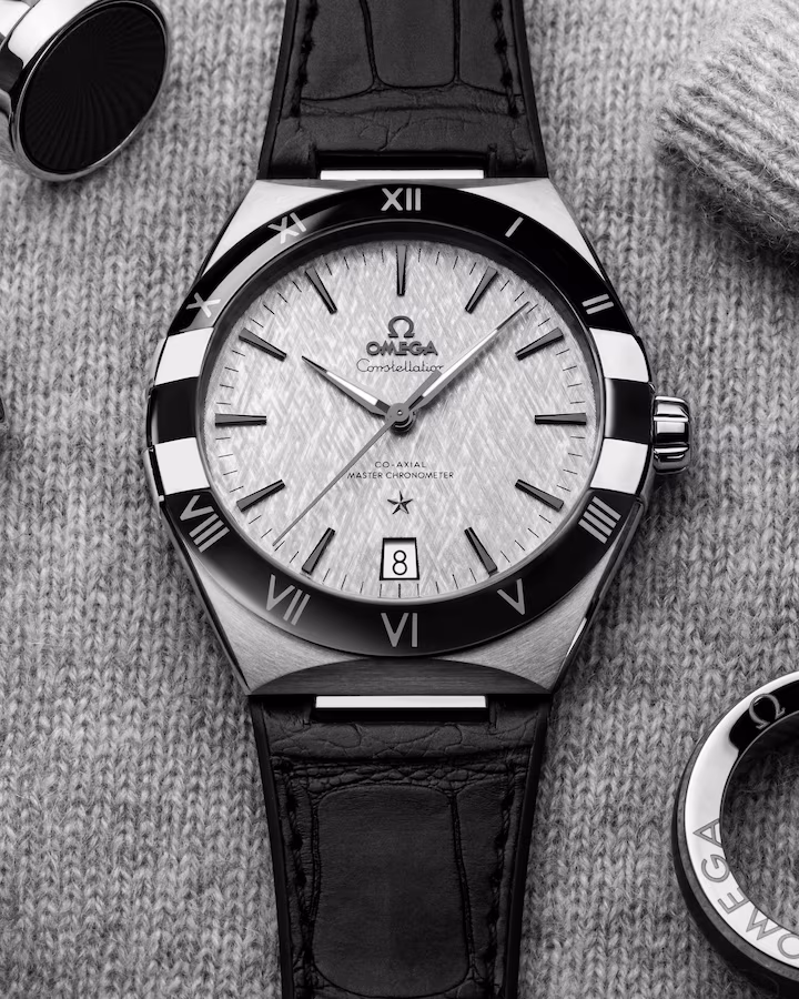 Unworn Omega Constellation CO‑AXIAL MASTER CHRONOMETER 131.33.41.21.06.001. 41 mm, Grey dial, Steel case, Black ceramic bezel, 8900 calibre, Automatic Movement, 60 hours power reserve, Leather strap Foldover clasp. Water resistant to 50 m.