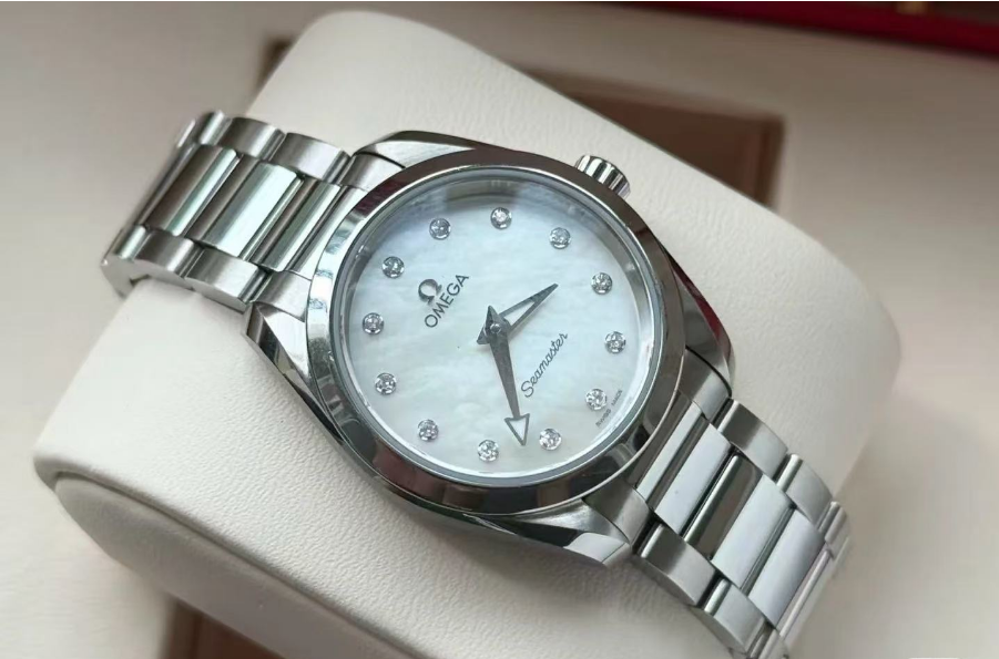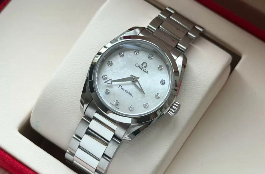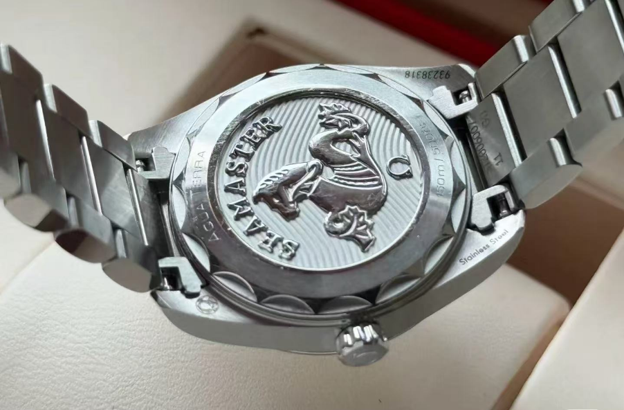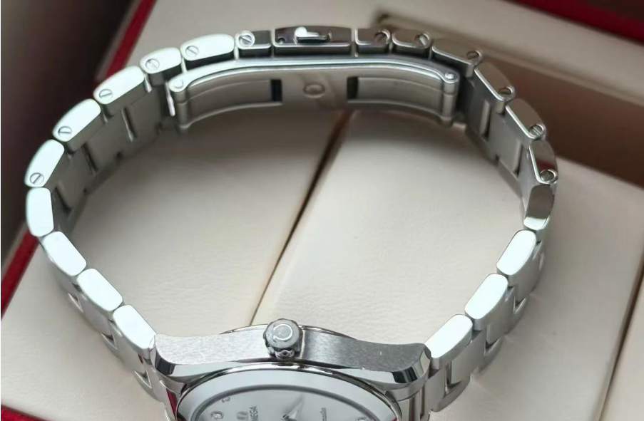 Calibre OMEGA 4061: Quartz movement with "Long Life" feature to maximize the autonomy of the battery. Exclusive red OMEGA logo with rhodium plated parts and circular graining.