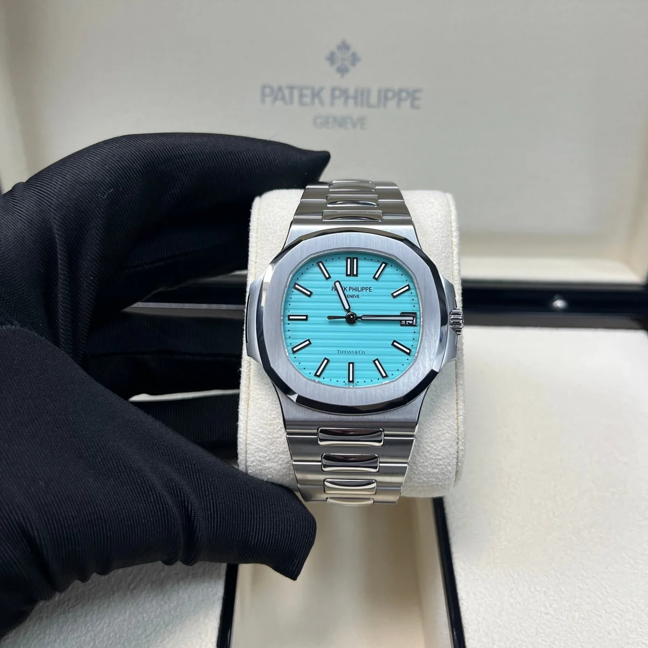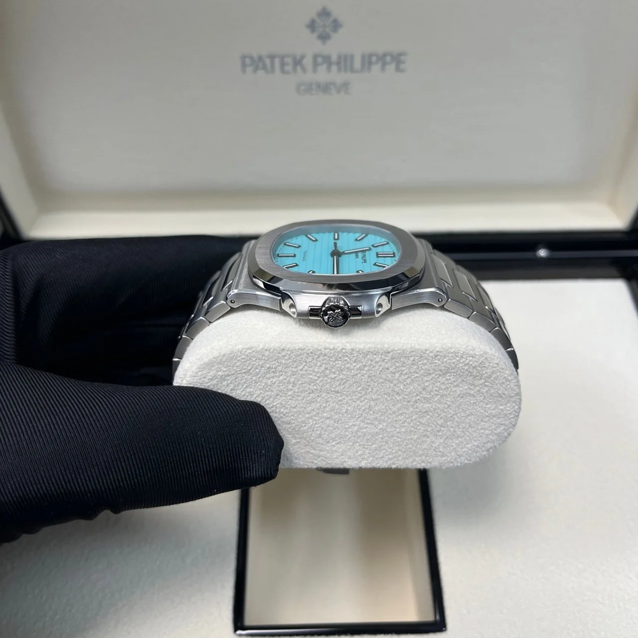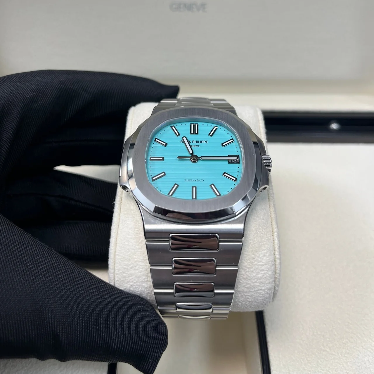 The subtle date window at 3 o'clock provides practical functionality without compromising the watch's aesthetic. The Nautilus Tiffany & Co. Blue Dial is powered by the self-winding Caliber 26-330 S C movement, a testament to Patek Philippe's watchmaking mastery. The sapphire crystal case back offers a view into the intricate mechanisms that make this timepiece tick. Its integrated stainless steel bracelet harmonizes seamlessly with the case, exuding a sense of unity in design. This watch is more than a timekeeping instrument; it's a symbol of your discerning taste and appreciation for fine horology. Embrace the timeless allure of the Patek Philippe Nautilus Tiffany & Co. Blue Dial 5711/1A-018 (2023). With its enchanting blue dial and impeccable craftsmanship, it stands as a tribute to the art of watchmaking and a celebration of luxury. Wearing this masterpiece on your wrist is not just displaying the time; it's making a statement of elegance and refinement that will undoubtedly turn heads and ignite conversations.