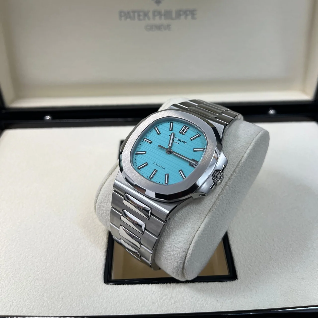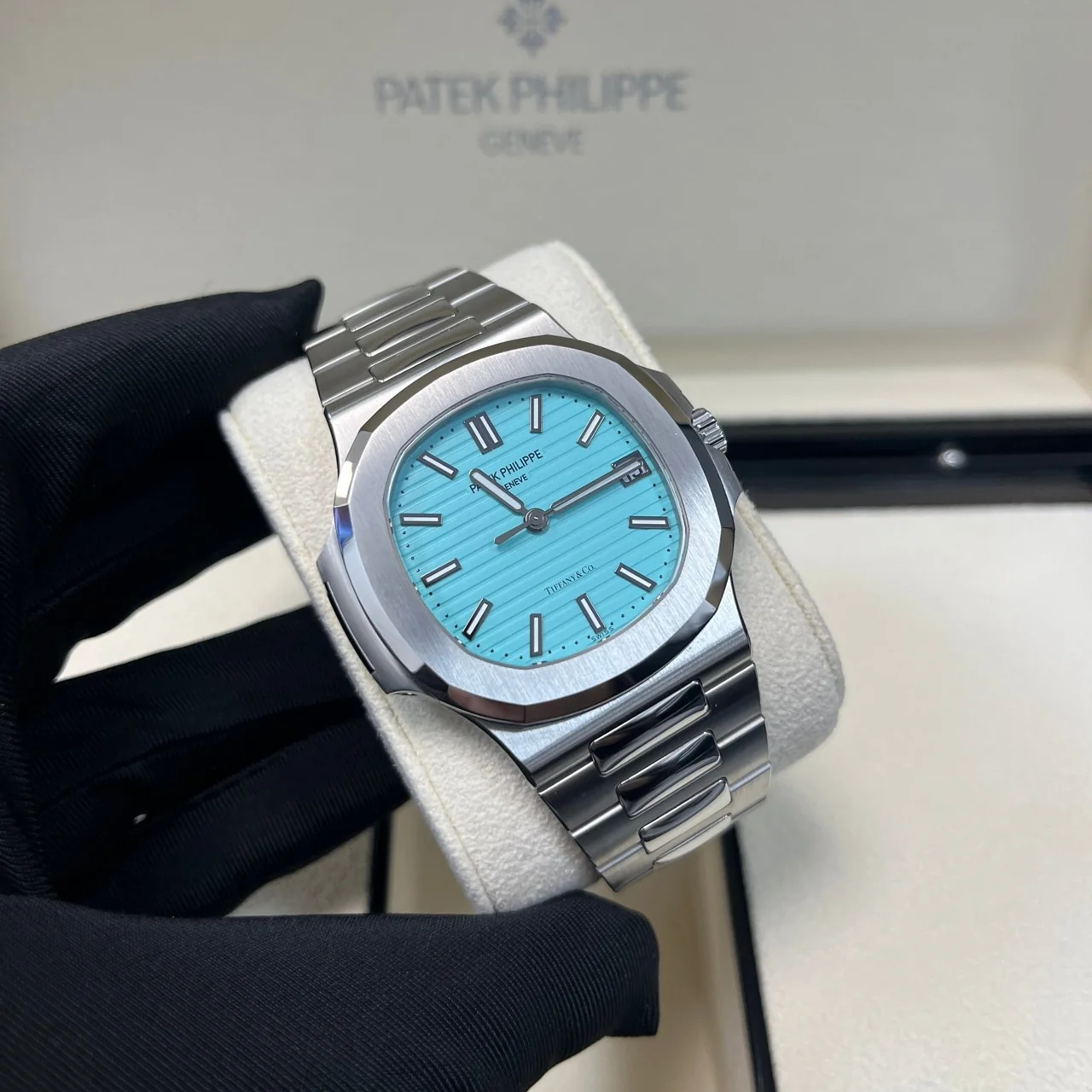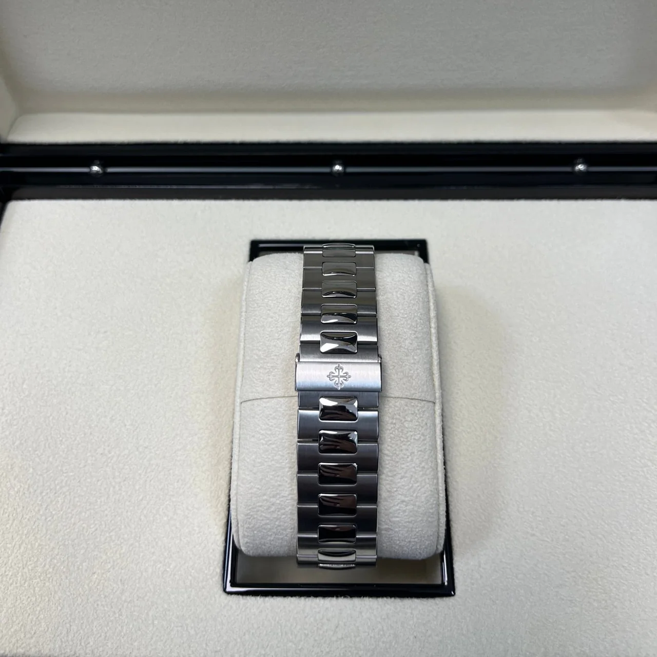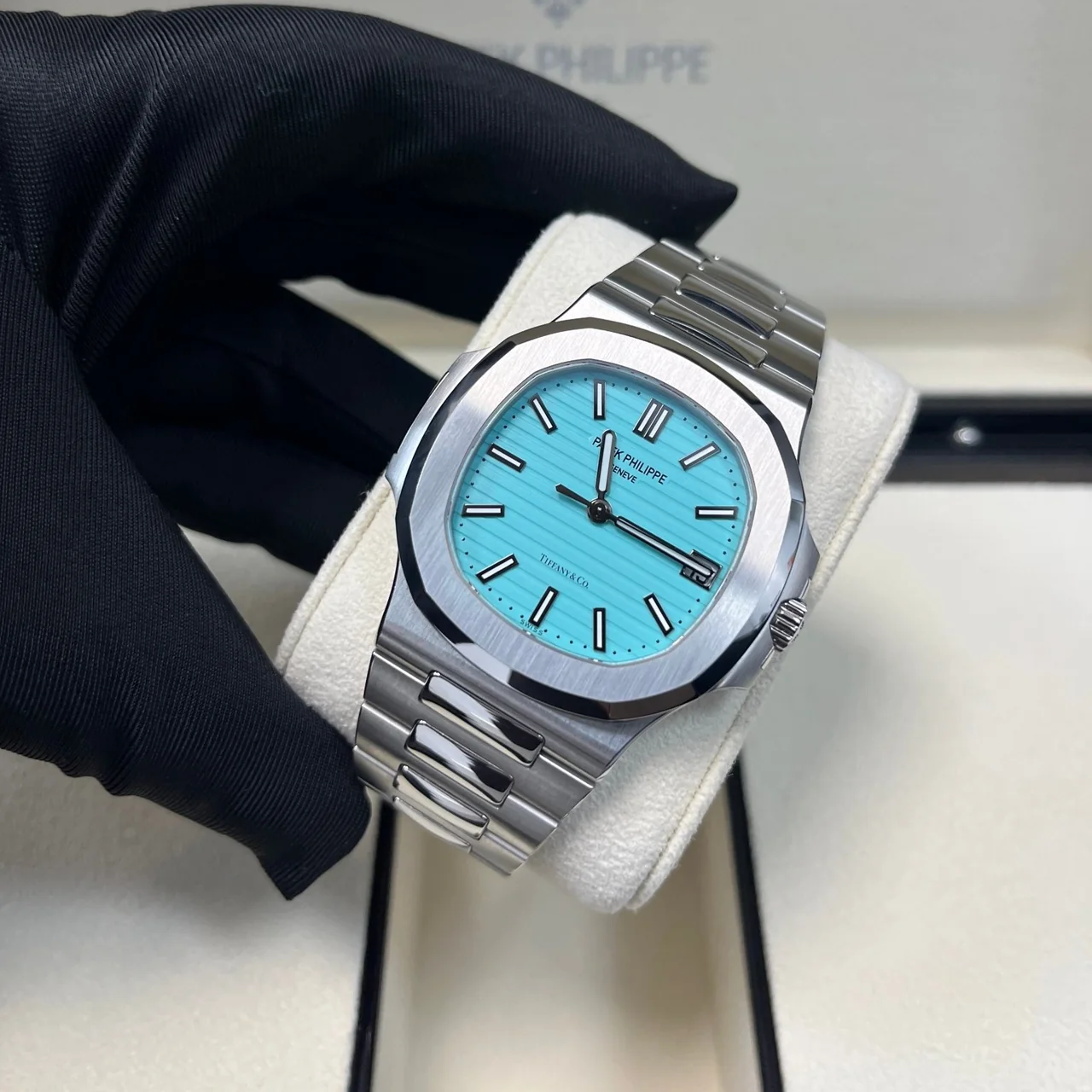 The subtle date window at 3 o'clock provides practical functionality without compromising the watch's aesthetic. The Nautilus Tiffany & Co. Blue Dial is powered by the self-winding Caliber 26-330 S C movement, a testament to Patek Philippe's watchmaking mastery. The sapphire crystal case back offers a view into the intricate mechanisms that make this timepiece tick. Its integrated stainless steel bracelet harmonizes seamlessly with the case, exuding a sense of unity in design. This watch is more than a timekeeping instrument; it's a symbol of your discerning taste and appreciation for fine horology. Embrace the timeless allure of the Patek Philippe Nautilus Tiffany & Co. Blue Dial 5711/1A-018 (2023). With its enchanting blue dial and impeccable craftsmanship, it stands as a tribute to the art of watchmaking and a celebration of luxury. Wearing this masterpiece on your wrist is not just displaying the time; it's making a statement of elegance and refinement that will undoubtedly turn heads and ignite conversations.