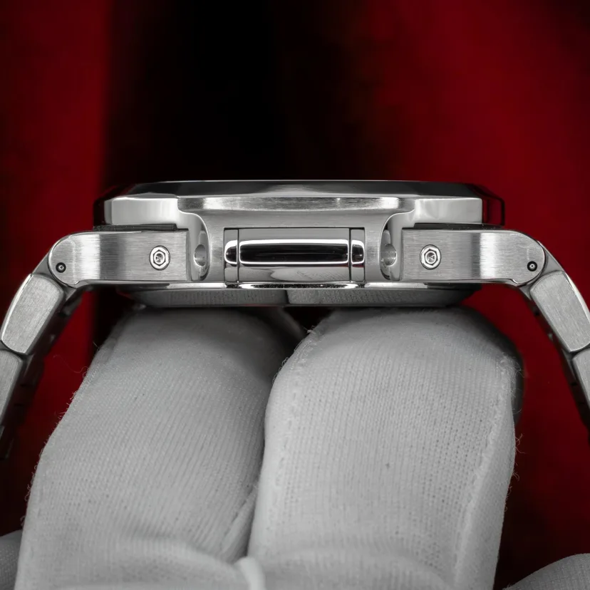 | BAND TYPE | Stainless Steel Bracelet with Nautilus fold-over clasp |