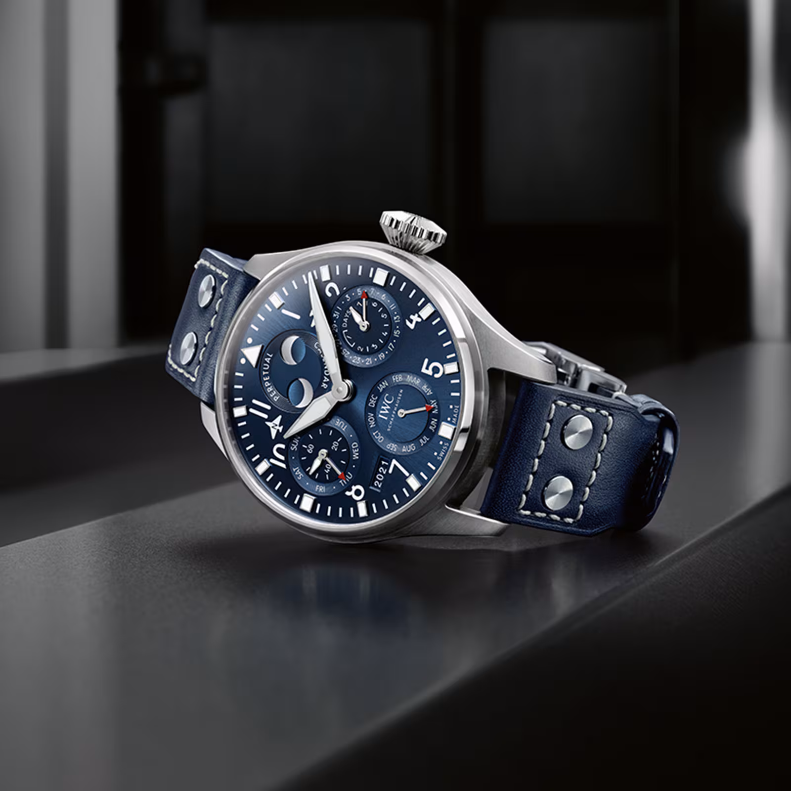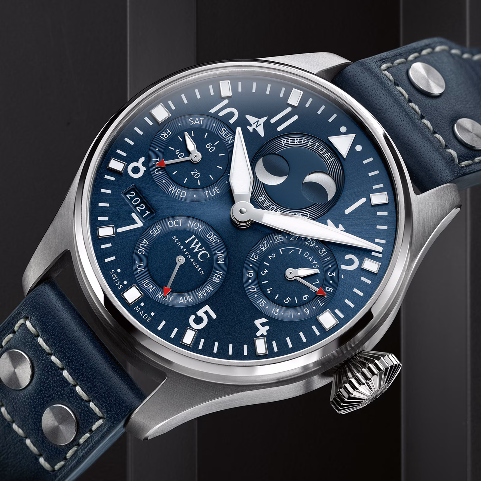 - Defined by its perpetual calendar with displays for the date, day, month, year in four digits and perpetual moon phase for the northern and southern hemisphere