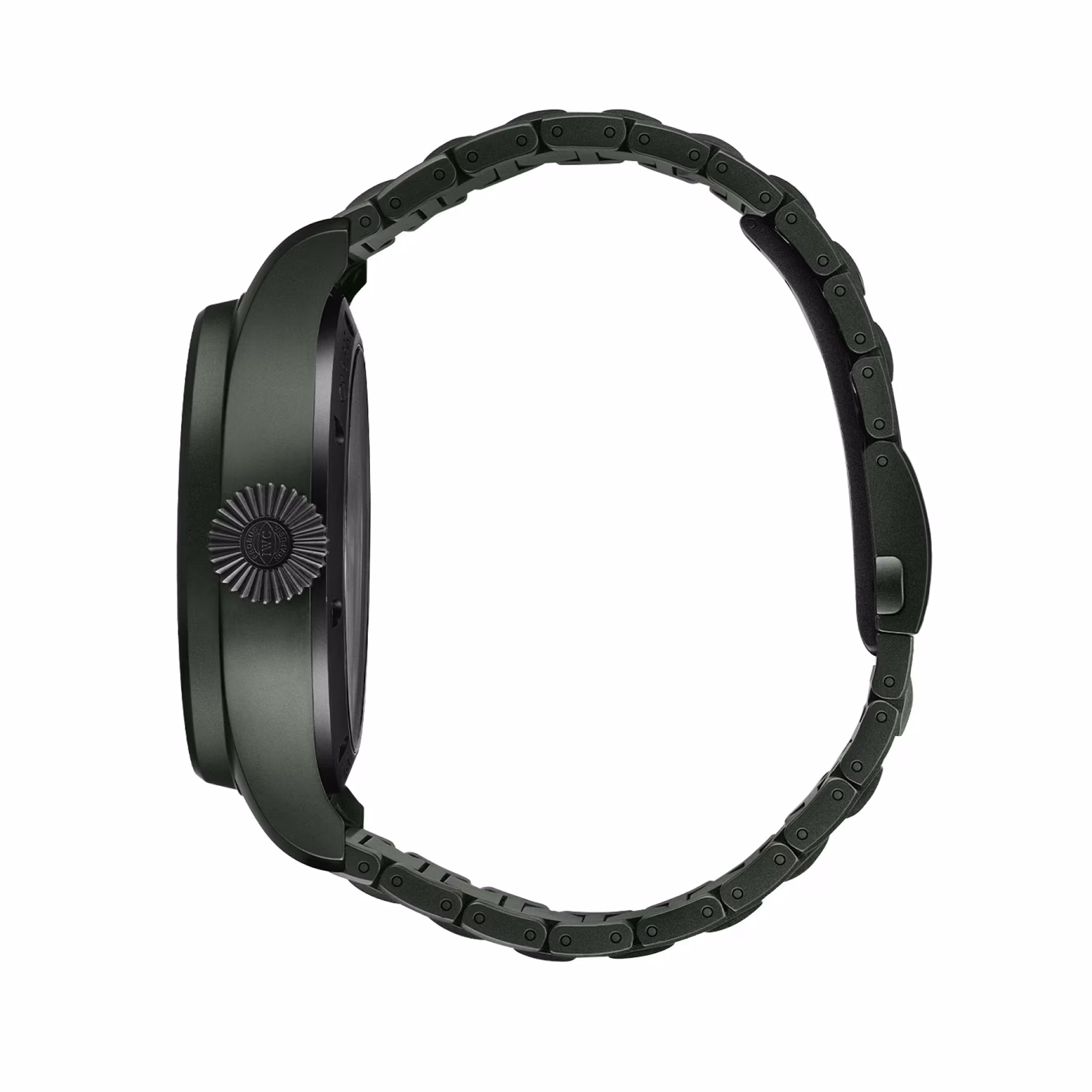 Tough-talking and durable yet lightweight and ergonomic on the wrist, this stand-out model features a green dial housed in a 46.5mm green ceramic case.