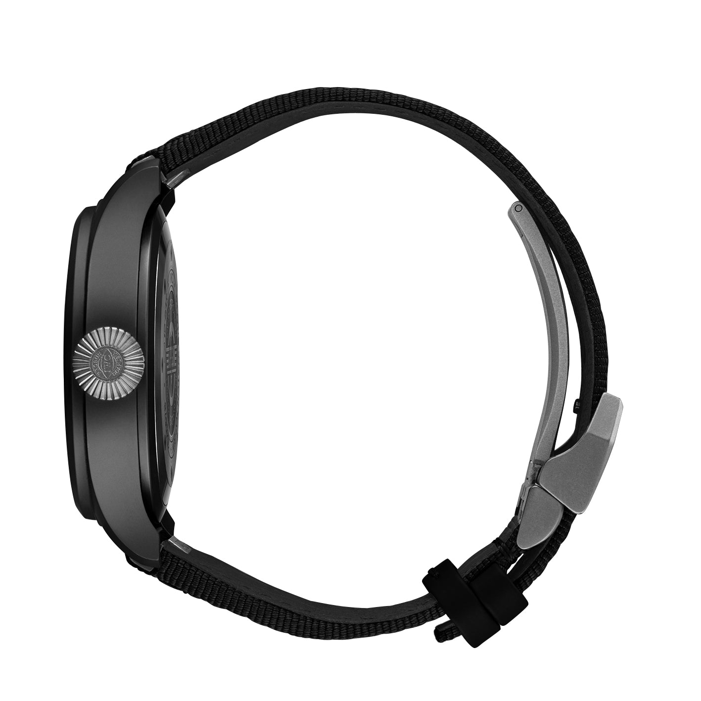 For the first time, this Big Pilot's Watch is presented in a 43mm case, crafted from black zirconium oxide ceramic for incredible scratch-resistance and durability. The case features an oversized conical crown, reminiscent of an historic observation watch from the 1940s, and fastens securely with a black textile strap.