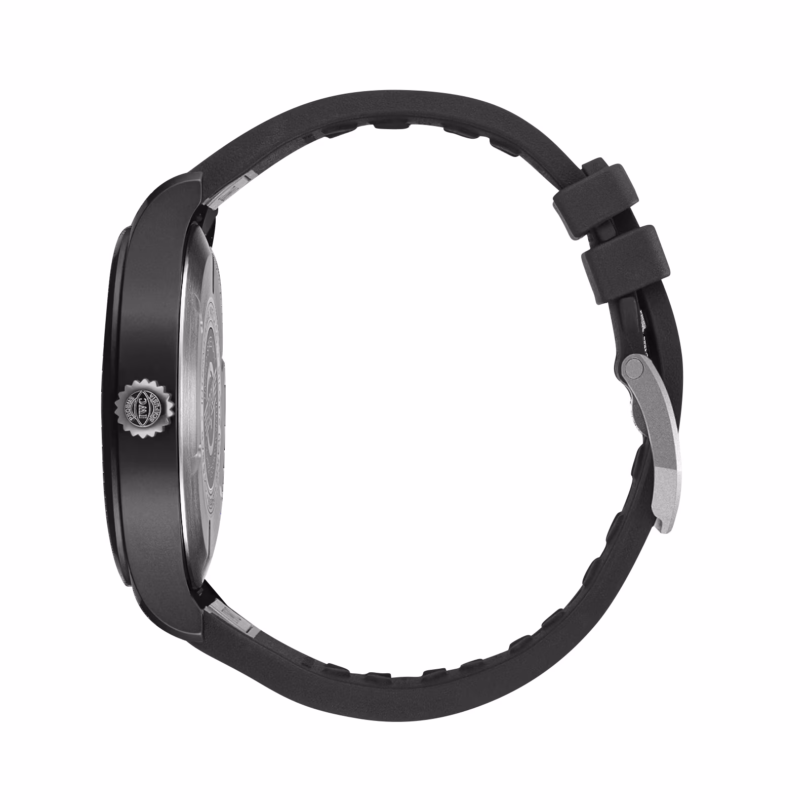 - Housed in a 41mm black ceramic case secured with a black fabric strap with quick release technology