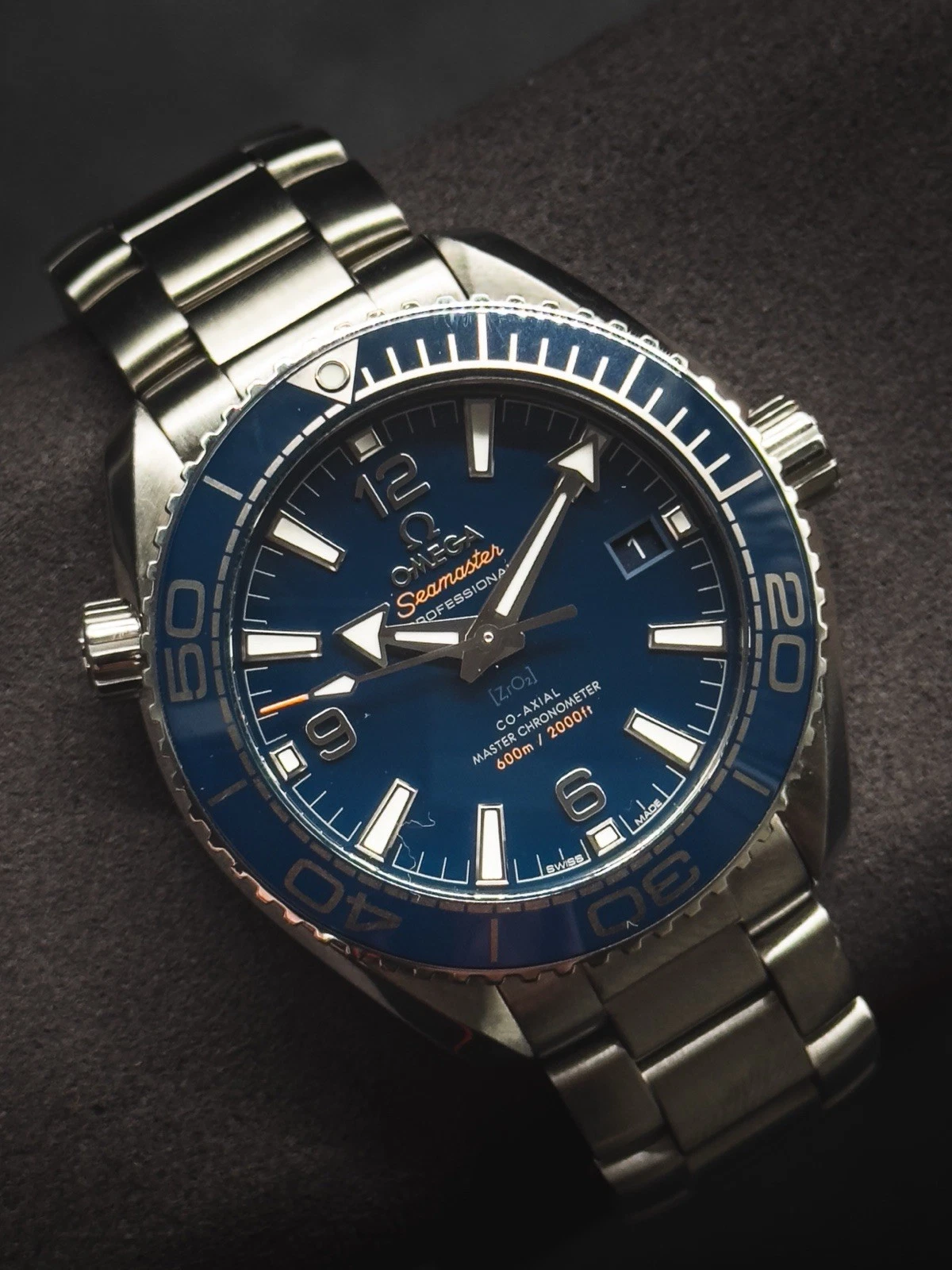 • Omega Seamaster Planet Ocean 600M 39.5mm Blue Dial Stainless Steel Bracelet 215.30.40.20.03.001