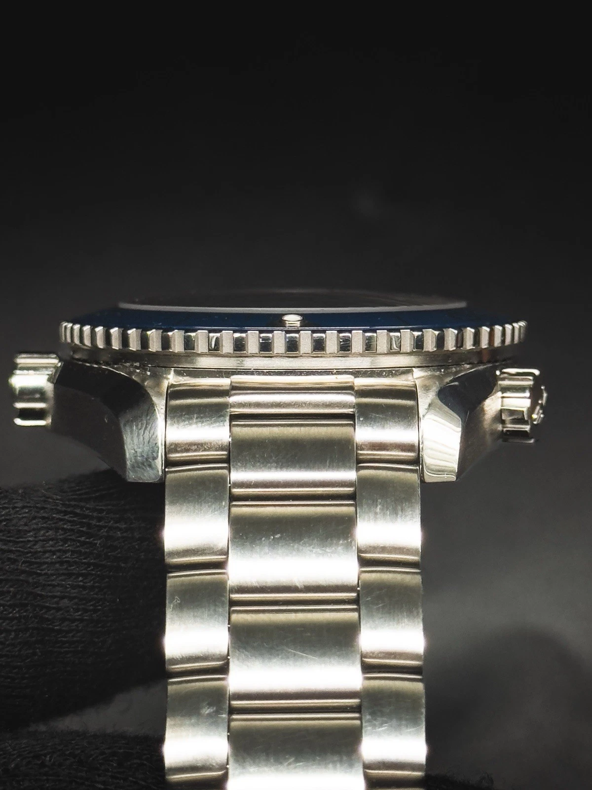 Helium escape valve: Decompression system which allows helium to escape from inside the watch when the watch is worn for professional use in pressure chambers. (Long-term underwater work, crude oil exploration, etc.)