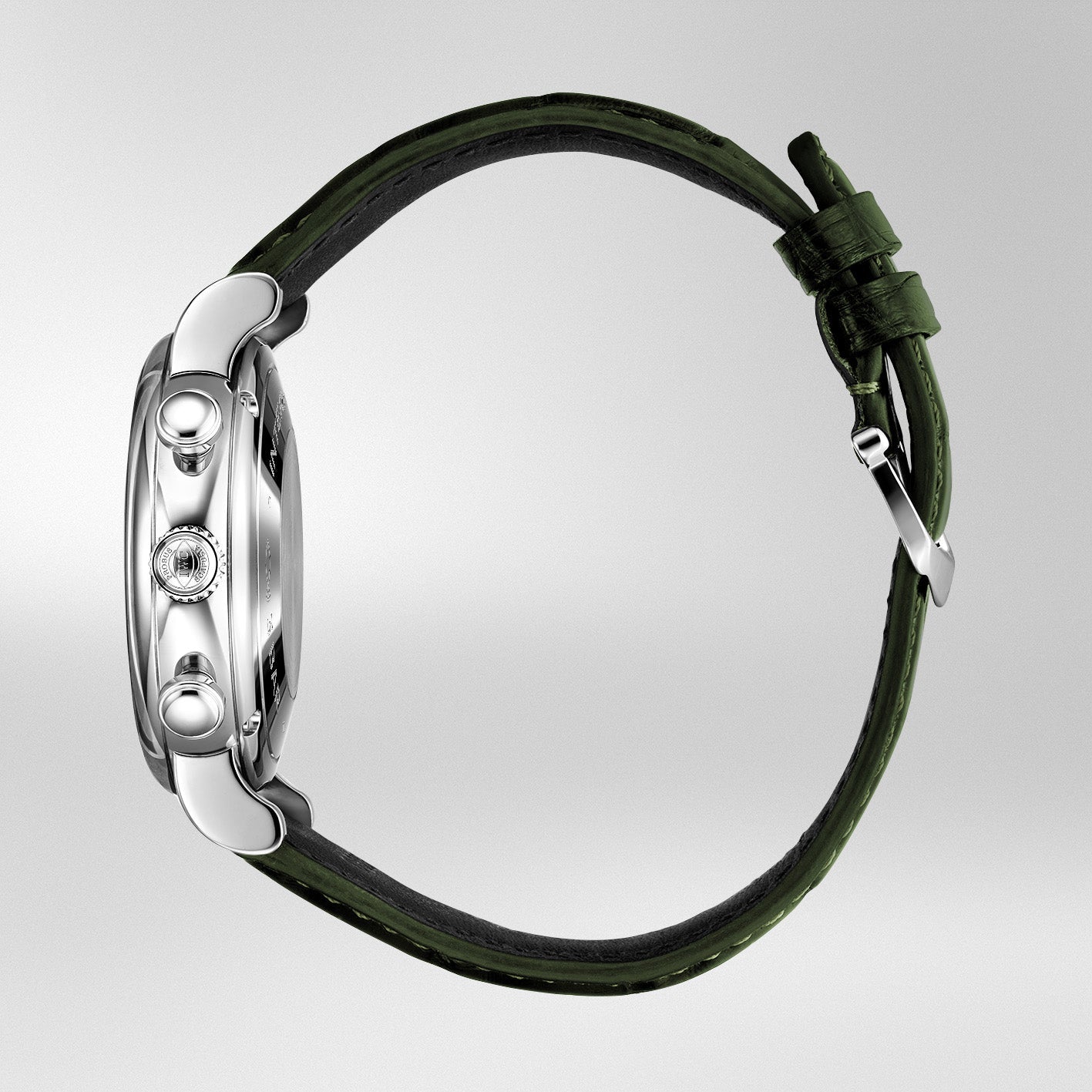 Providing this timepiece with style and security, this robust 39mm model is presented on a green alligator leather strap secured by a stainless-steel pin buckle fastening.