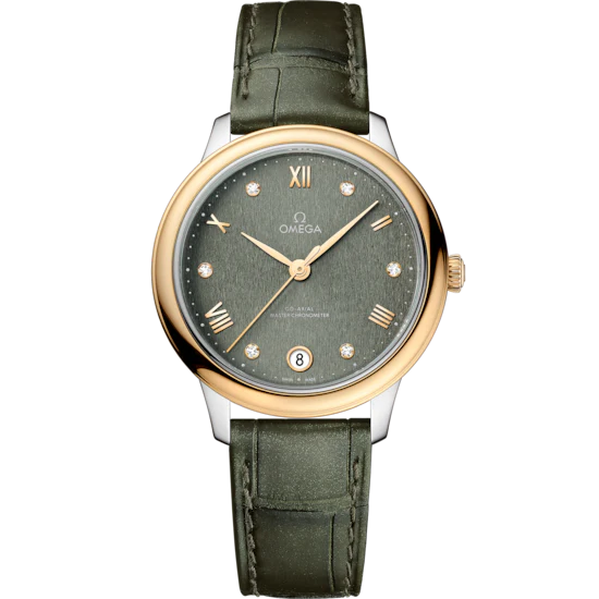 Omega De Ville Prestige 34mm Green Dial with Diamonds Stainless Steel and 18k Yellow Gold Strap 434.23.34.20.60.001