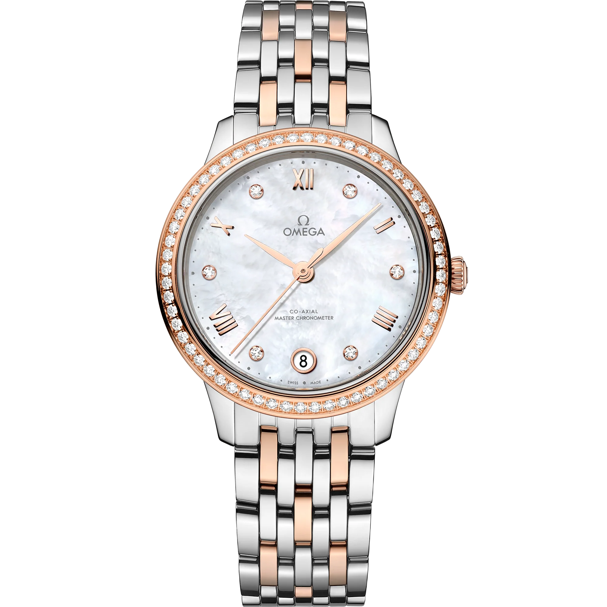 Omega De Ville Prestige 34 mm White Dial with Diamonds Stainless Steel and Sedna™ 18k Rose Gold Strap 434.23.34.20.55.001