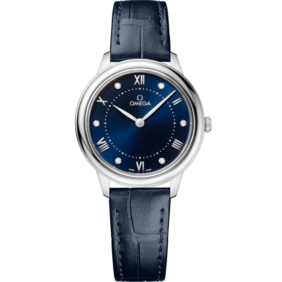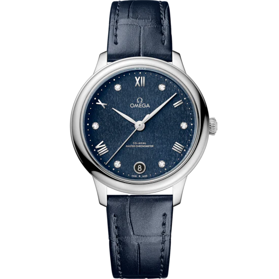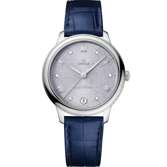 Omega De Ville Prestige 34 mm Blue Dial with Diamonds Stainless Steel Strap 434.13.34.20.53.001