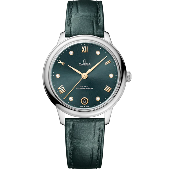 Omega De Ville Prestige 34mm Green Dial with Diamonds Stainless Steel Strap 434.13.34.20.60.001