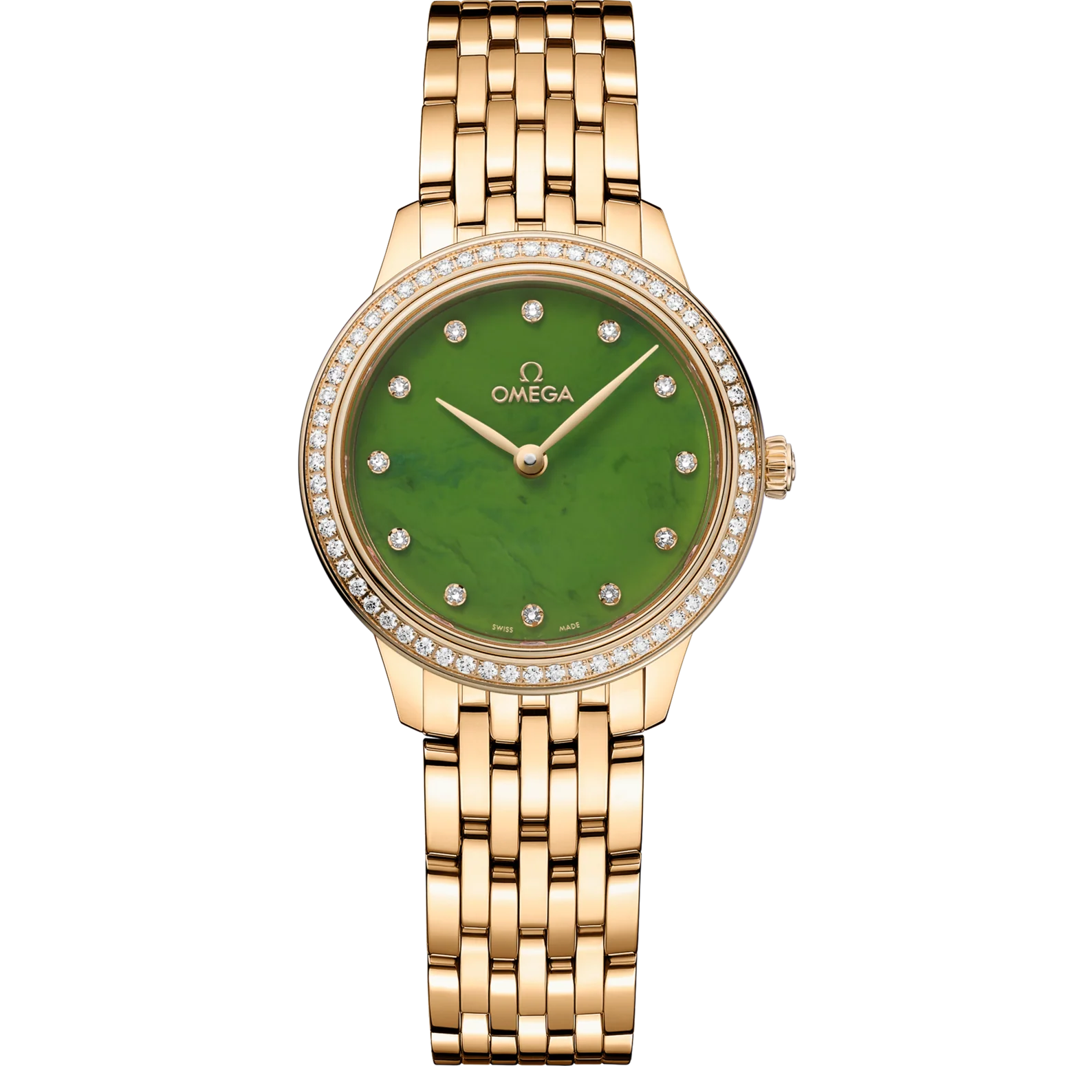 Omega De Ville Prestige 27.5mm Green jade Dial with Diamonds 18k Yellow Gold Strap 434.55.28.60.99.001