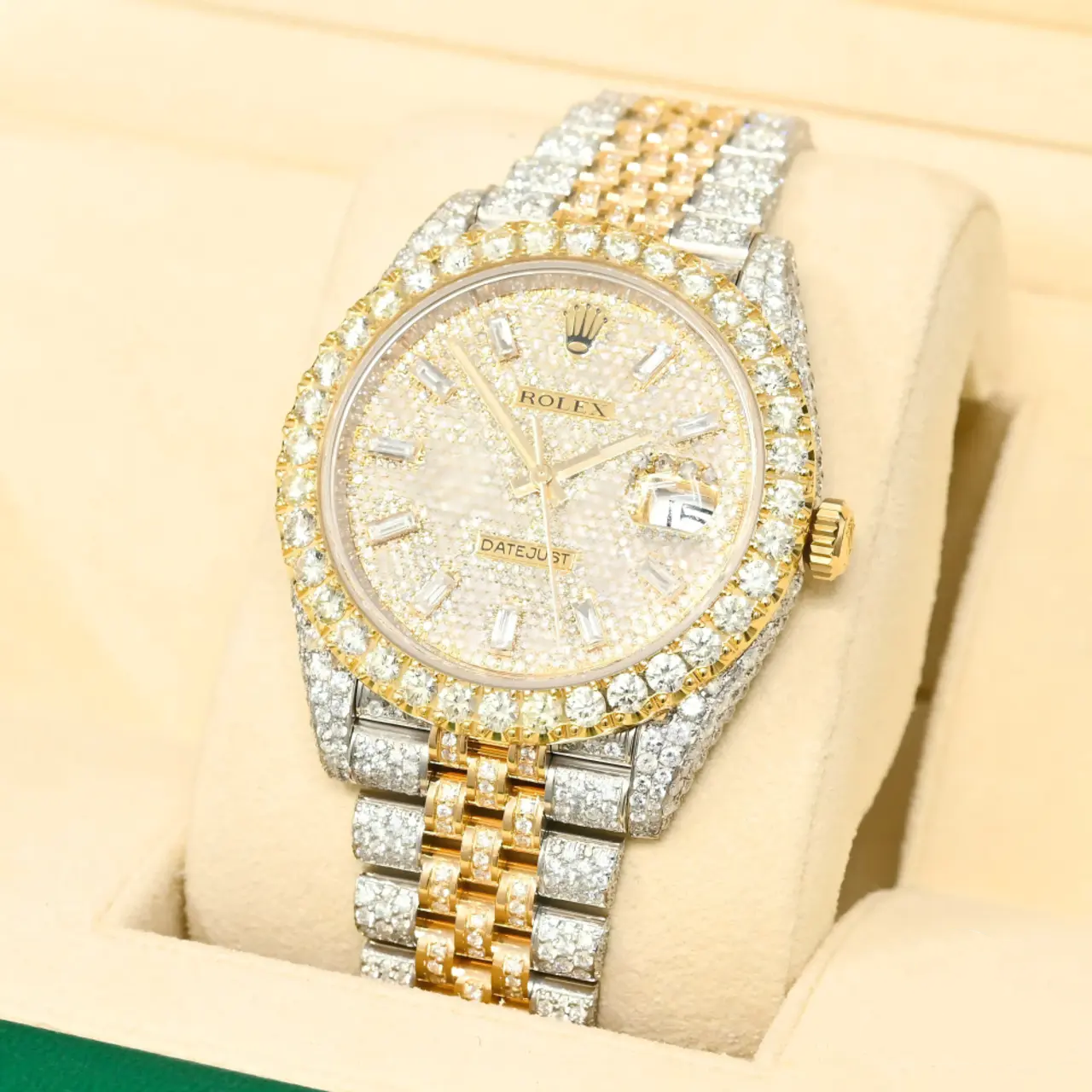 Expertly crafted with a VVS Moissanite and an Automatic Movement, this Day-Date President Roman Numeral watch exudes premium luxury at an affordable price. Elevate your style and impress with the timelessness of this exquisite timepiece.