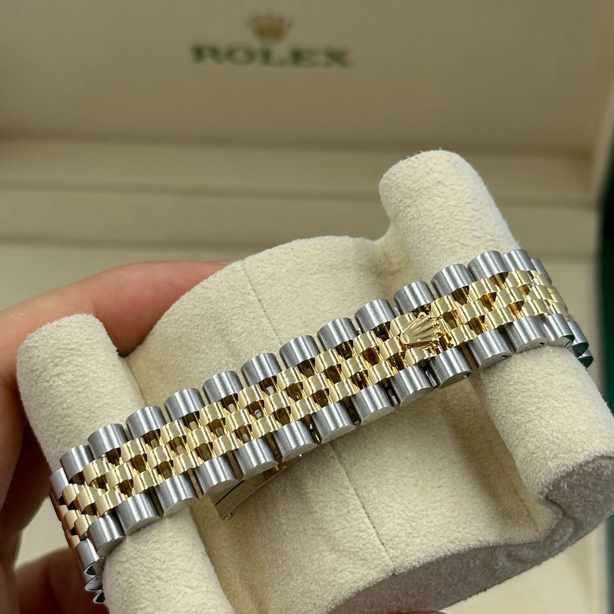| Band | three-piece solid links / Jubilee, five-piece links |
