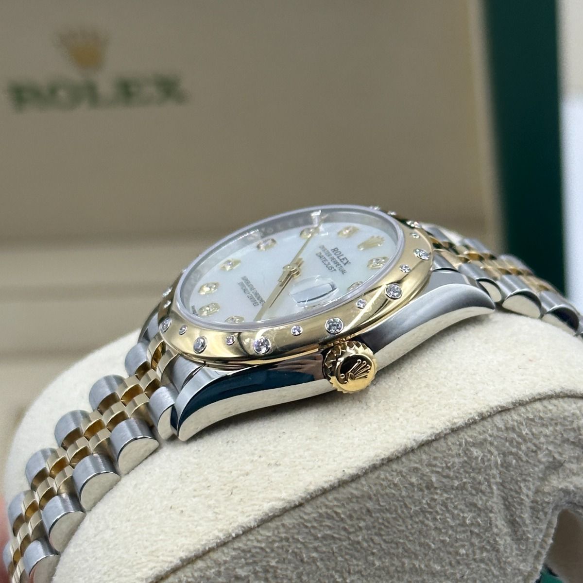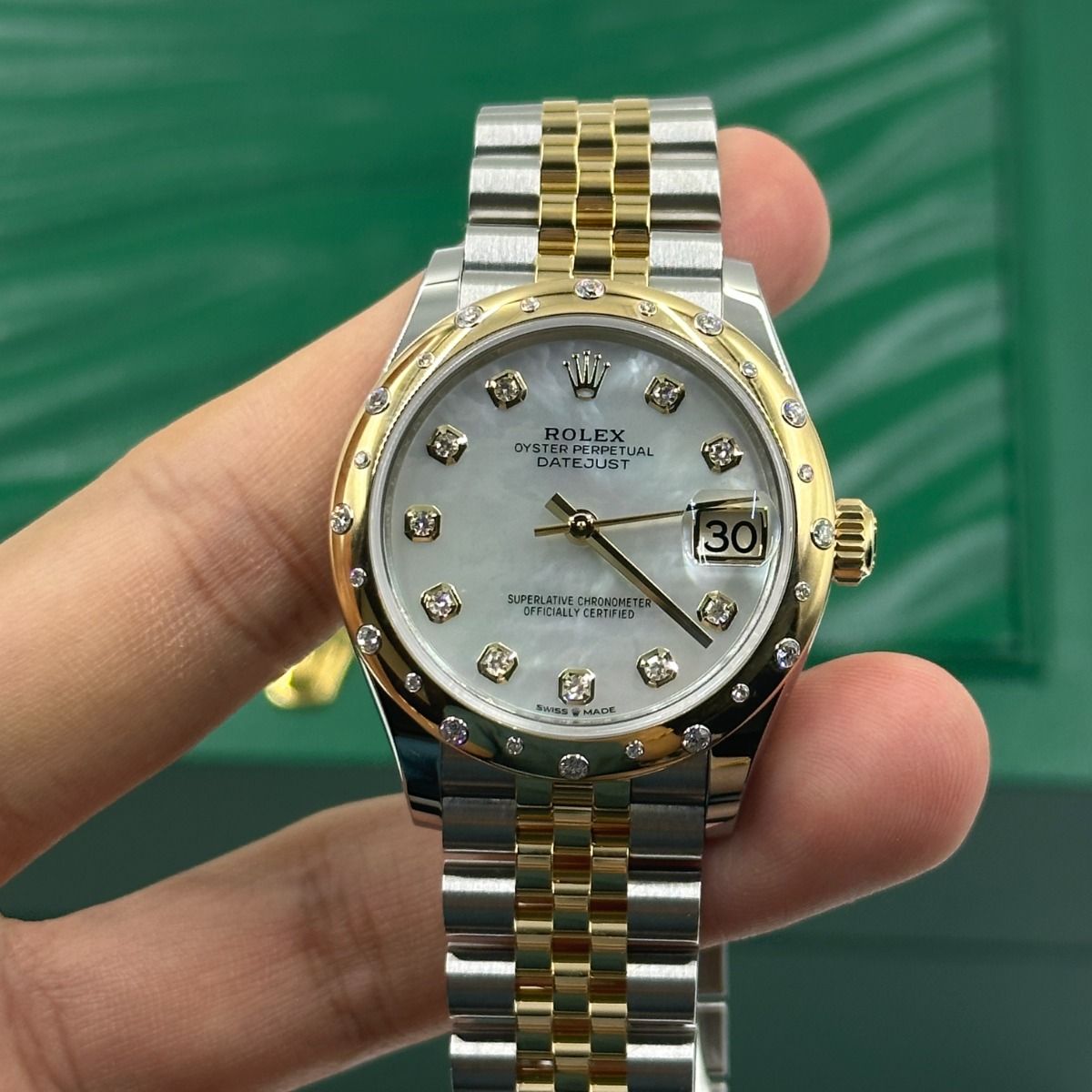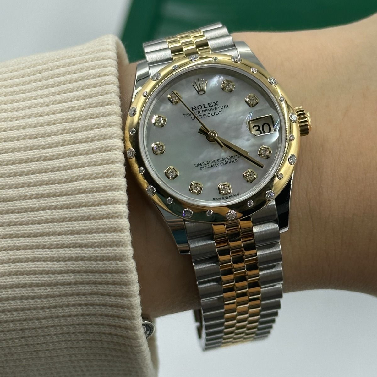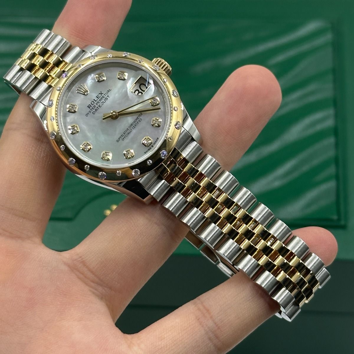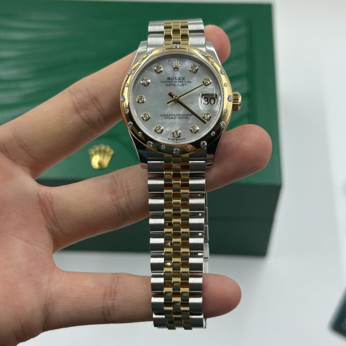 | Band | three-piece solid links / Jubilee, five-piece links |