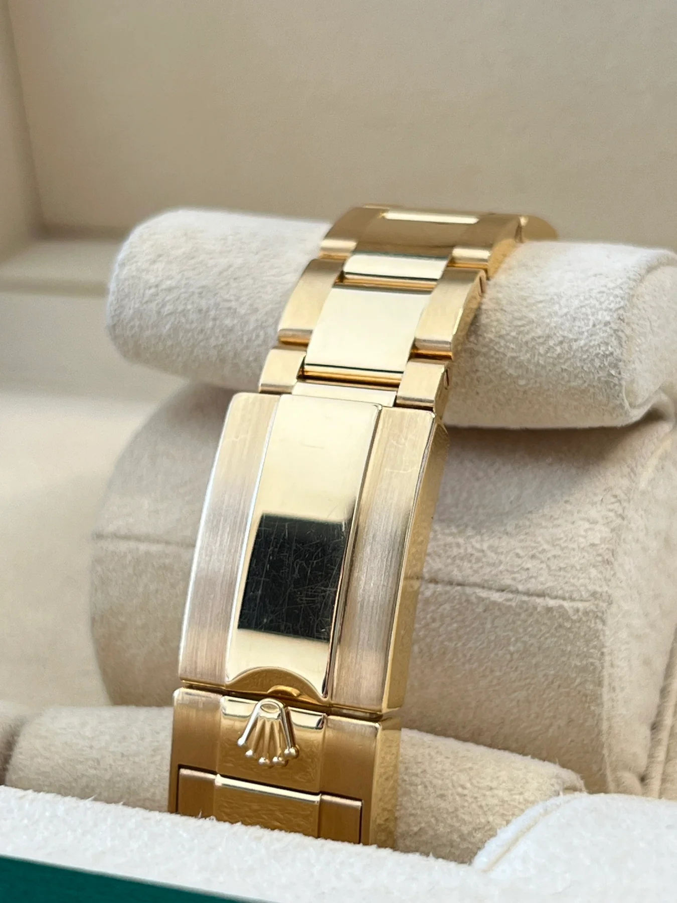 At the heart of this timepiece is Rolex Calibre 3186. The Automatic movement operates at 28800 A/h and keeps the hands revolving smoothly and accurately for precise, reliable timekeeping. It contains 31 Jewels, and picks up all the advantages of this high-performance ‘engine’, including a 50-hour power reserve.
