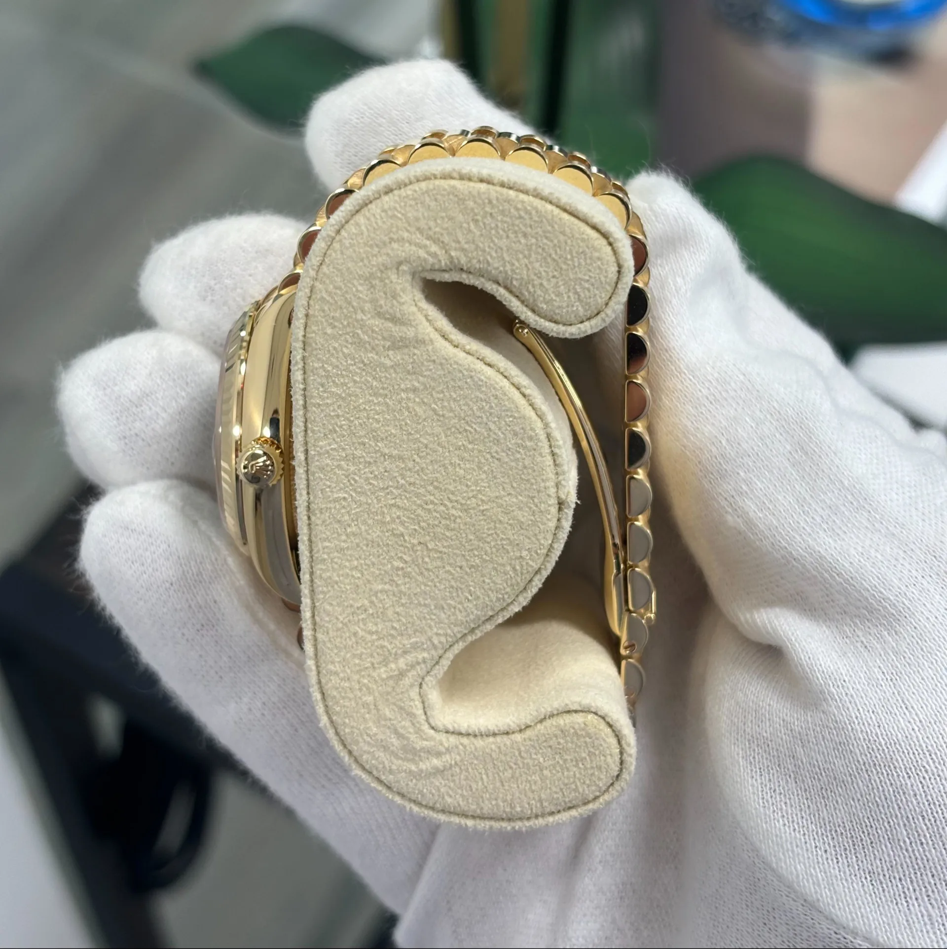 | Dial Color | Olive green set with diamonds |