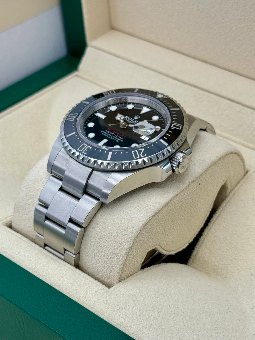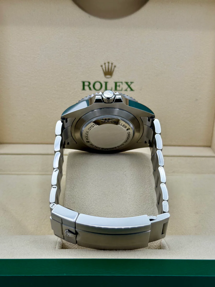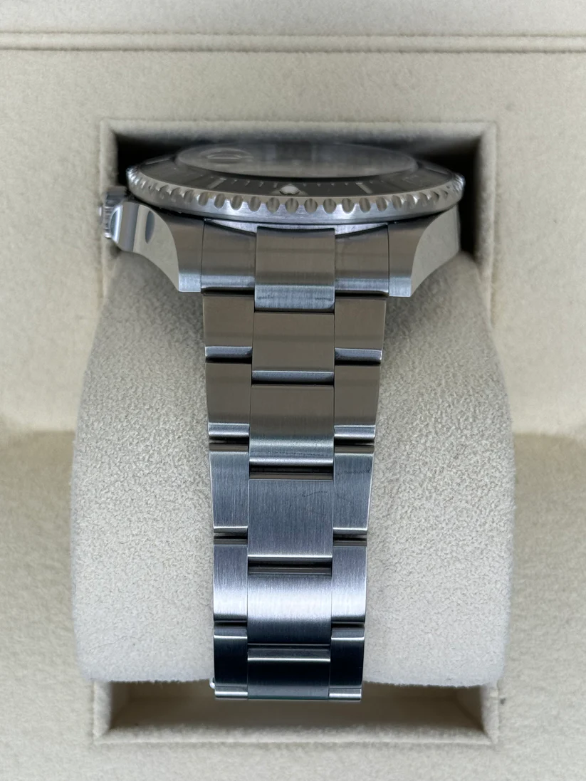 Rolex Calibre 3235 automatic movement with a 70-hour power reserve. Scratch resistant sapphire crystal. Screw down crown. Solid case back. Round case shape. Case size: 43 mm. Oysterlock clasp. Water resistant at 1200 meters / 4000 feet. Functions: date, hour, minute, second, chronometer. Dive watch style. Watch label: Swiss Made