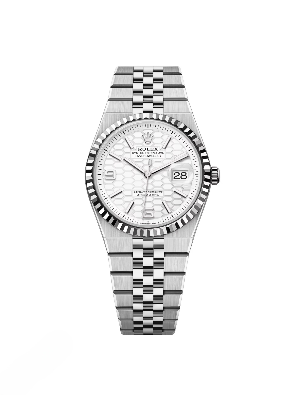 Rolex Land-Dweller 127234-0001 White Honeycomb Dial White Rolesor Jubilee Bracelet 36mm