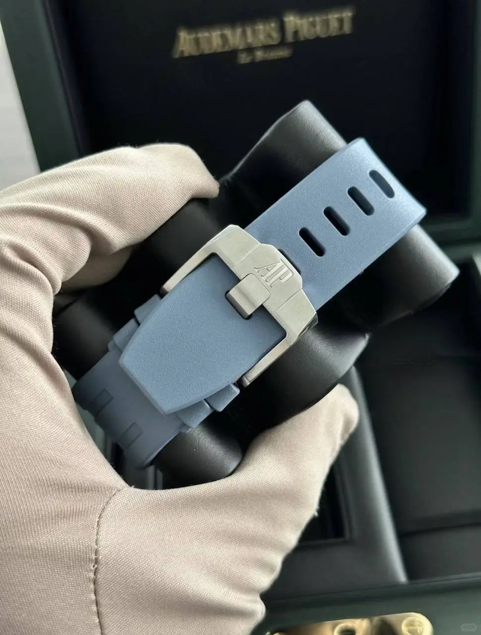 Audemars Piguet 15605SK.OO.A350CA.01 Royal Oak Offshore Smoked Blue with “Méga Tapisserie” Pattern 43mm Dial Blue Rubber Strap