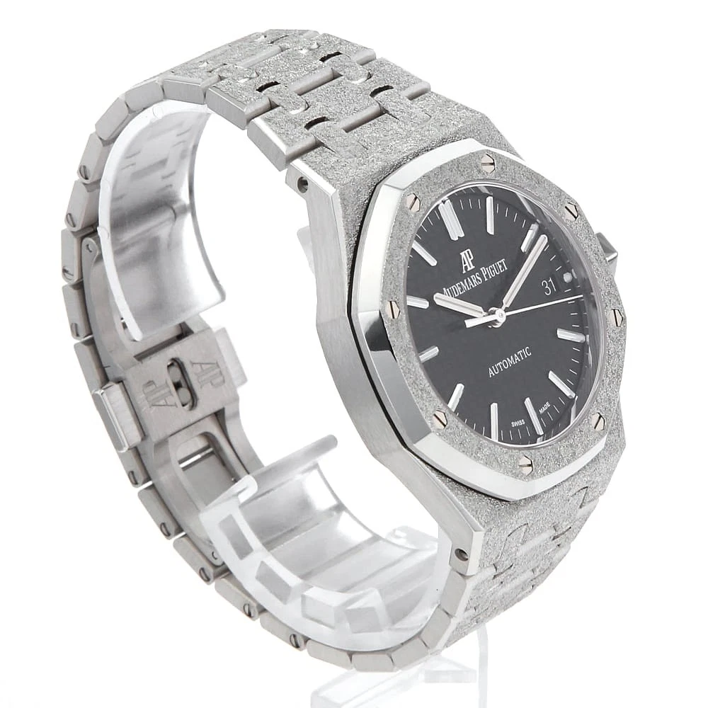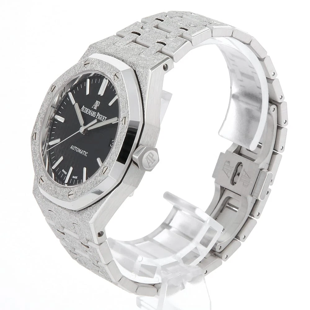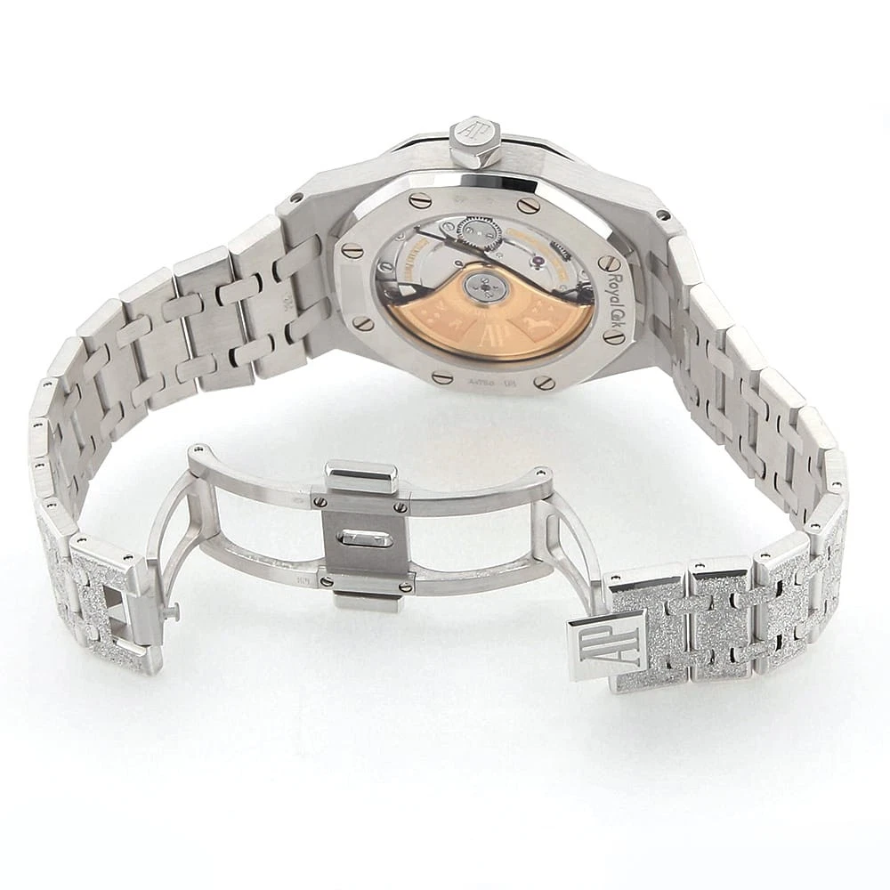 Dial Black dial with “Grande Tapisserie” pattern, white gold applied hour-markers and Royal Oak hands with luminescent coating