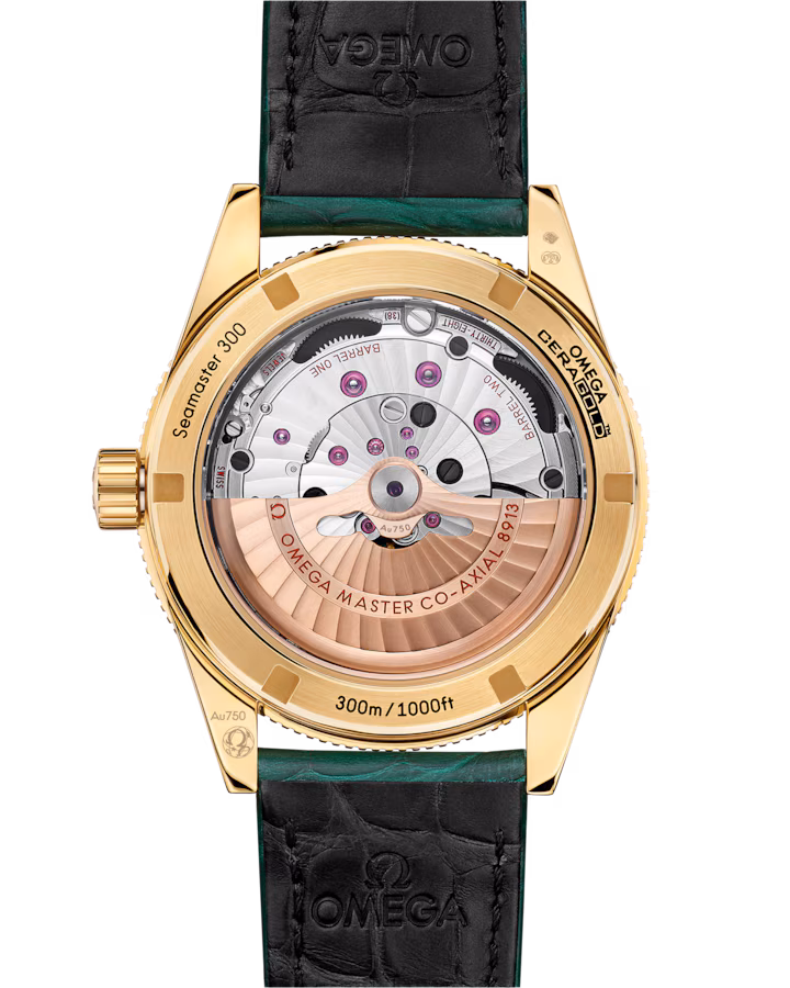 Omega Seamaster 300 41mm Green Dial 18k Yellow Gold Strap 234.63.41.21.99.001