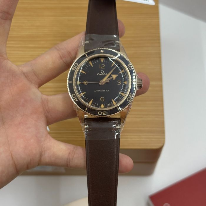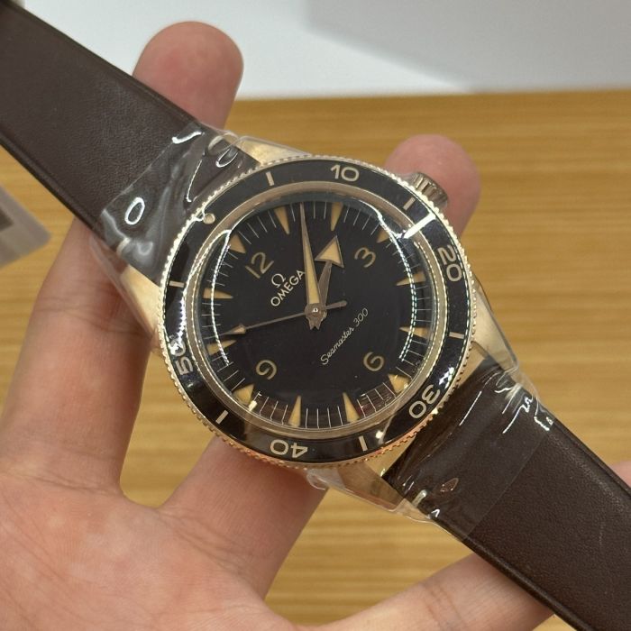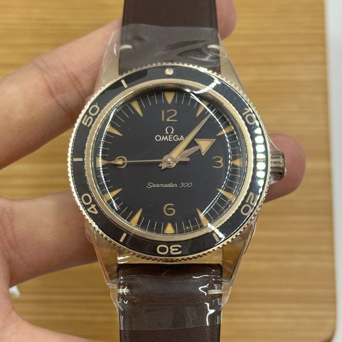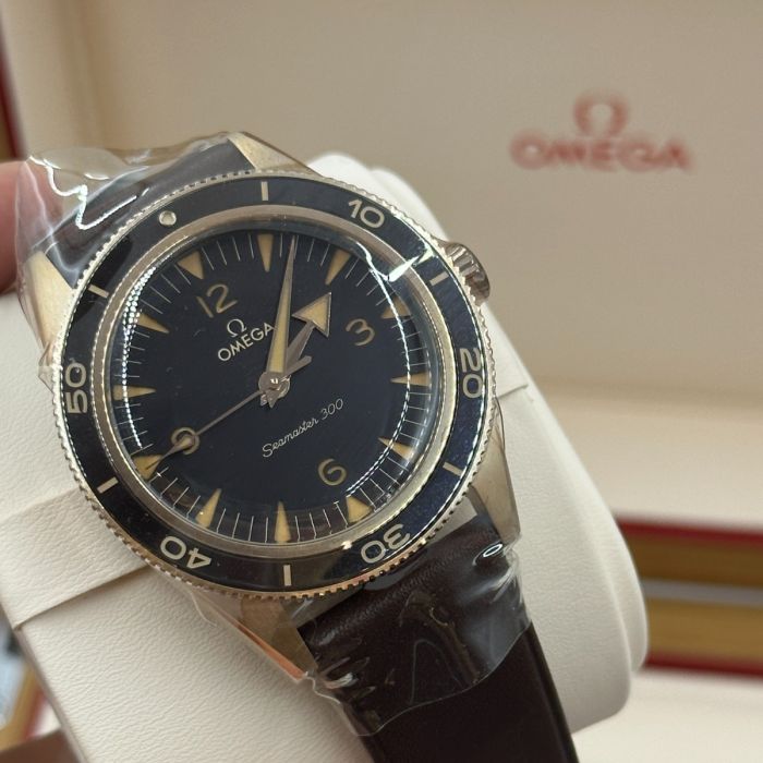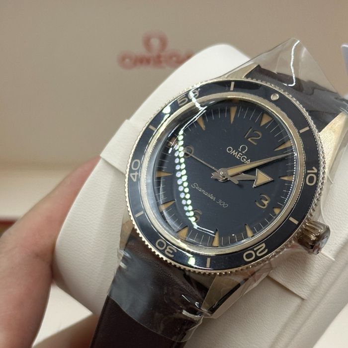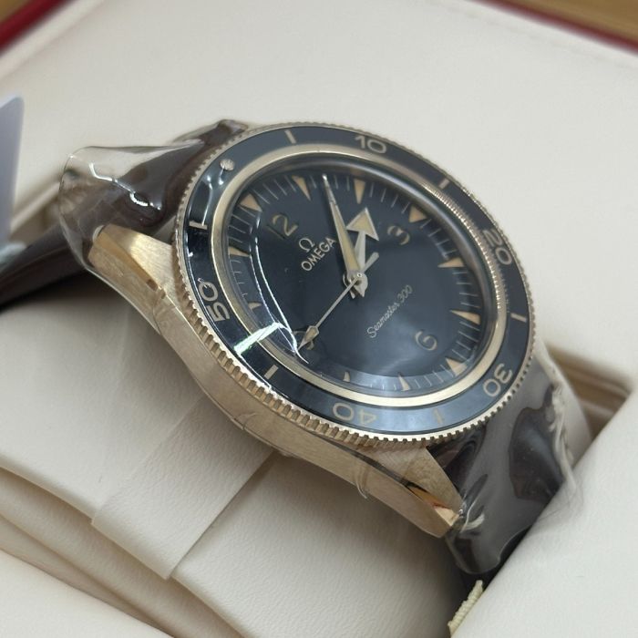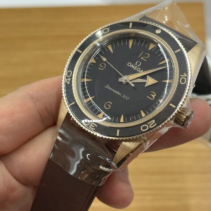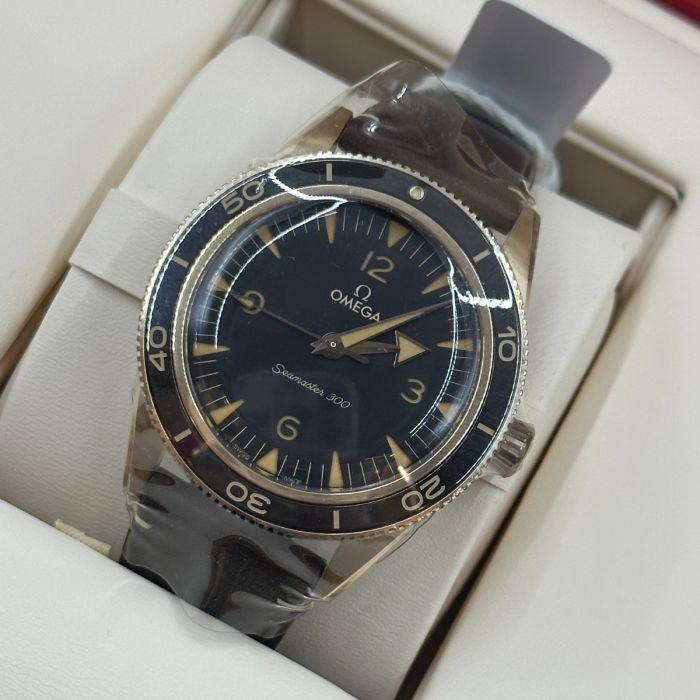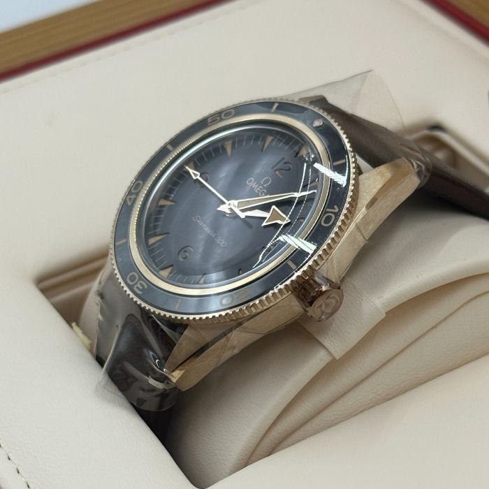 Unworn Omega Seamaster 300 CO‑AXIAL MASTER CHRONOMETER 234.92.41.21.10.001. 41 mm, Brown dial, Bronze Gold case, Ceramic bezel, 8912 calibre, Self Winding Movement, 60 hours power reserve, Leather strap with Pin buckle clasp. Water resistant to 300 m.