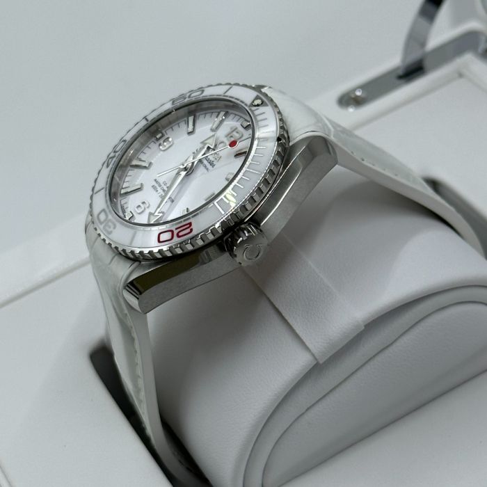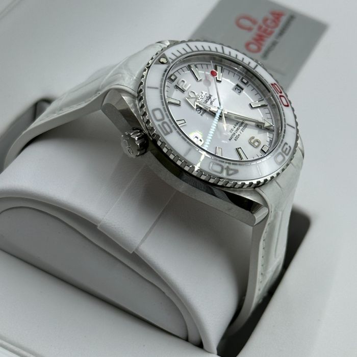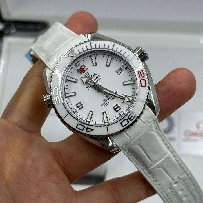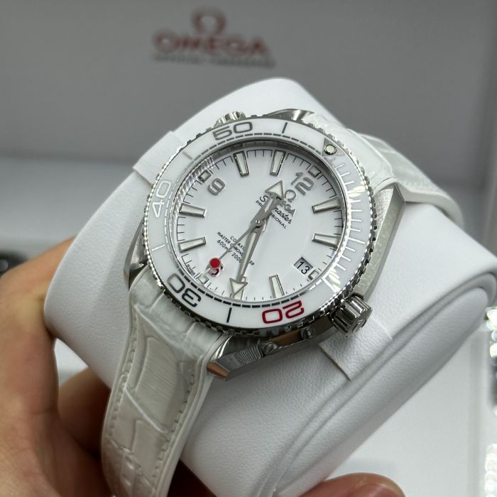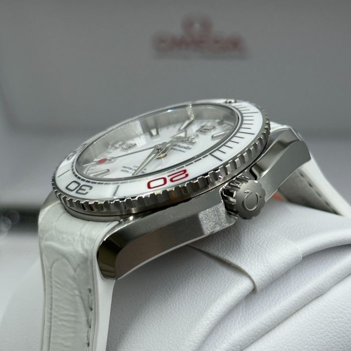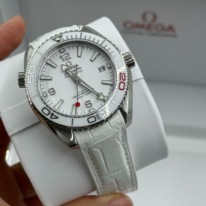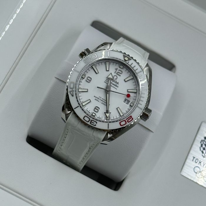 The Omega Seamaster Olympic Games Tokyo 2020 Men's Watch 522.33.40.20.04.001 is a limited edition piece from the Olympic Games Collection. Its brushed and polished stainless steel case is paired with a white leather strap and a white ceramic bezel with diving scale. The dial features luminescent hands and index hour markers, as well as Arabic numerals at 6, 9, and 12 o'clock. Additionally, the watch boasts a red-tipped central seconds hand representing the flag of Japan and an anti-magnetic feature that can resist magnetic fields greater than 1.5 tesla (15,000 gauss).