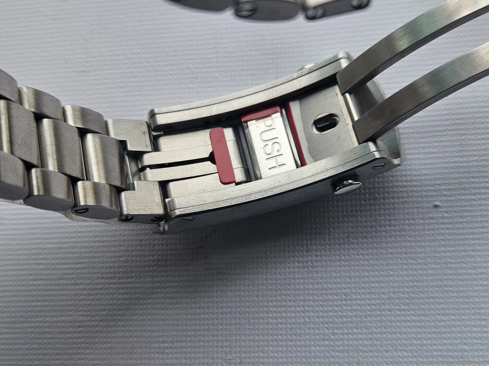 Other features include an alveol screw-in caseback and a stainless steel bracelet with patented extendable foldover clasp.