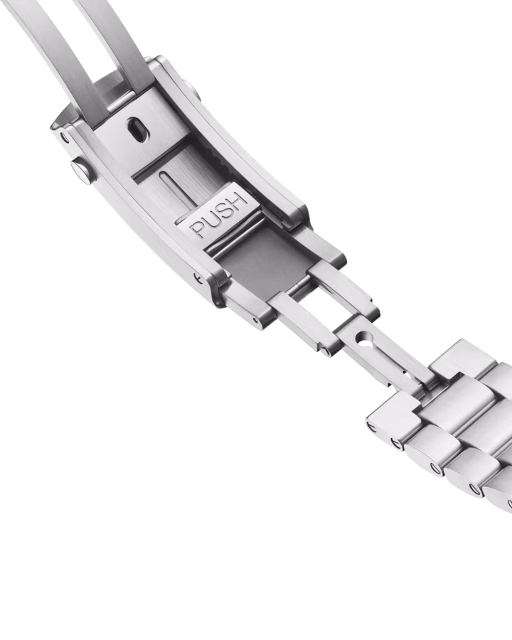 Other features include an alveol screw-in caseback and a stainless steel bracelet with patented extendable foldover clasp.
