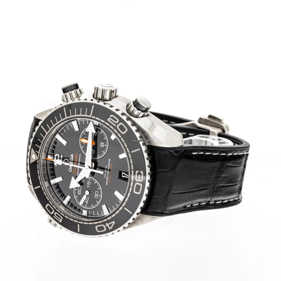 The OMEGA Seamaster Planet Ocean 600M Master Chronometer Chronograph is water resistant to 60 bar (600 metres / 2000 feet), and has a helium-escape valve. The OMEGA Master Chronometer calibre 9900 at the heart of this timepiece can be seen through the transparent caseback. To achieve Master Chronometer status, it has passed the 8 rigorous tests set by METAS (The Swiss Federal Institute of Metrology).