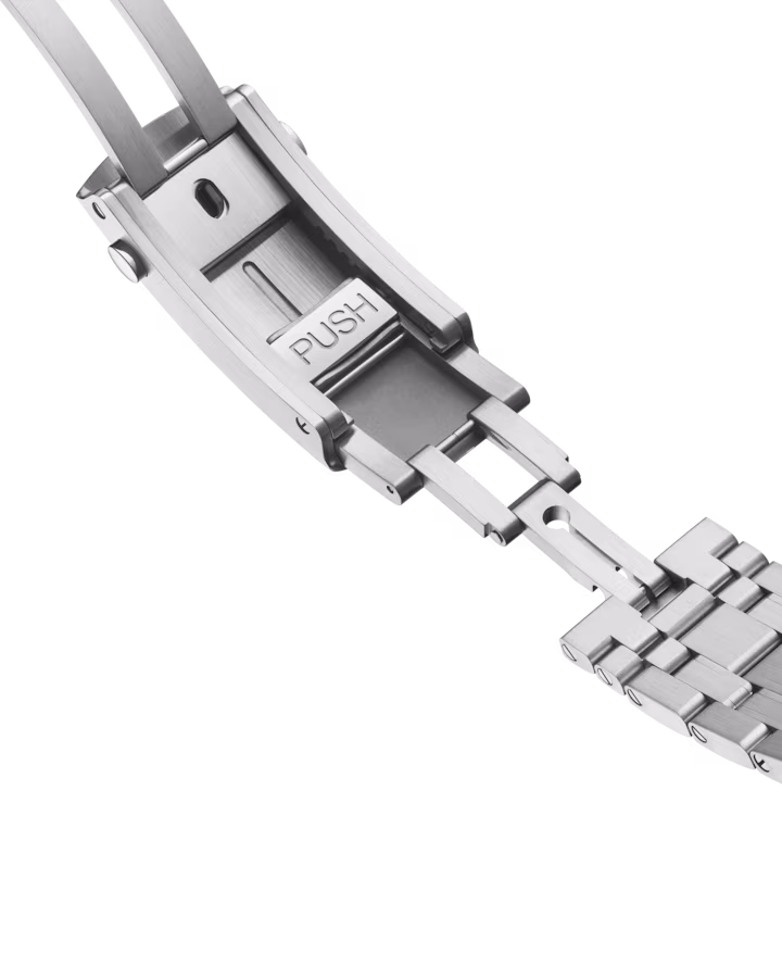 | Bracelet: | Stainless steel bracelet with push-button deployant clasp. Fits up to 8 3/4" wrist |