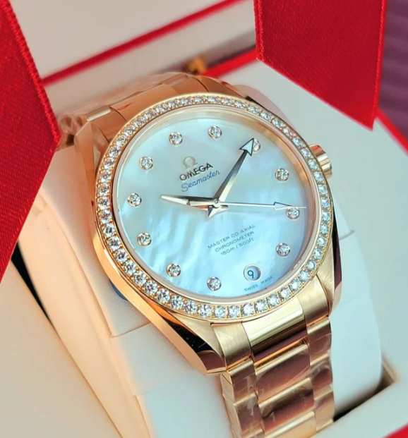 Omega Seamaster Aqua Terra 150M 34 mm White Dial with Diamonds Sedna™ 18k Rose Gold Bracelet 220.55.34.20.55.001