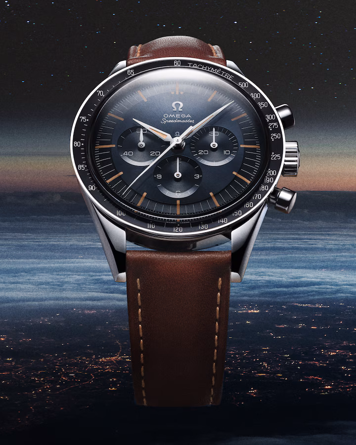 On October 3rd, 1962, the Speedmaster CK 2998 became the first OMEGA worn in space, when the astronaut Walter Schirra wore his personal model on the Sigma 7 mission of the Mercury programme. This updated version is a tribute to that pioneering timepiece and captures the same 2nd generation Speedmaster style in modern form. The 39.70 mm case is crafted in polished and brushed stainless steel and features a brown leather strap with a stainless steel buckle. The bezel ring is presented in black aluminium and includes the legendary tachymeter scale with an emblematic “Dot Over Ninety”. Beneath the brand new hesalite-like form sapphire crystal, the grey-blue dial is CVD coated, to replicate the tone of some CK 2998 watches produced in the 1960s. Along with indexes and hour/minute “Alpha” hands that are filled with vintage Super-LumiNova, the central seconds “Baton” hand is white varnished to match the transferred markings. Subdials include a 30-minute recorder at 3H, a 12-hour recorder at 6H, and a small-seconds display at 9H. A vintage OMEGA logo is applied on the dial, as well as on the crown, while the caseback features the famous Seahorse medallion, and the engravings, “THE FIRST OMEGA IN SPACE” and “OCTOBER 3, 1962”. The watch is driven by the Co-Axial Master Chronometer Calibre 3861, which is the most up-to-date version of the Calibre 321 worn by astronauts in space. Each watch is delivered inside a special presentation box with a “LEGENDARY MOONWATCH” leaflet inside.